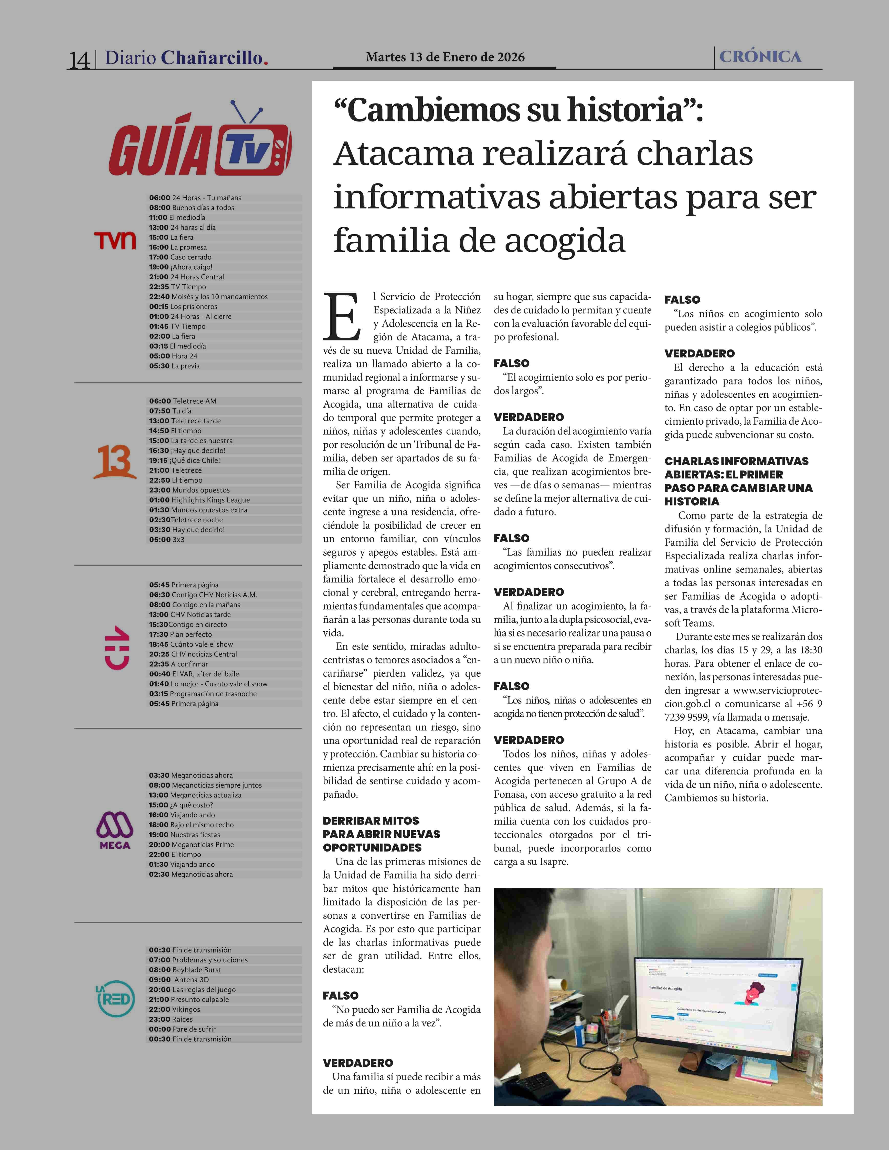 "Cambiemos su historia": Atacama realizará charlas informativas abiertas para ser familia de acogida 13-01-2026 Diario Chañarcillo |