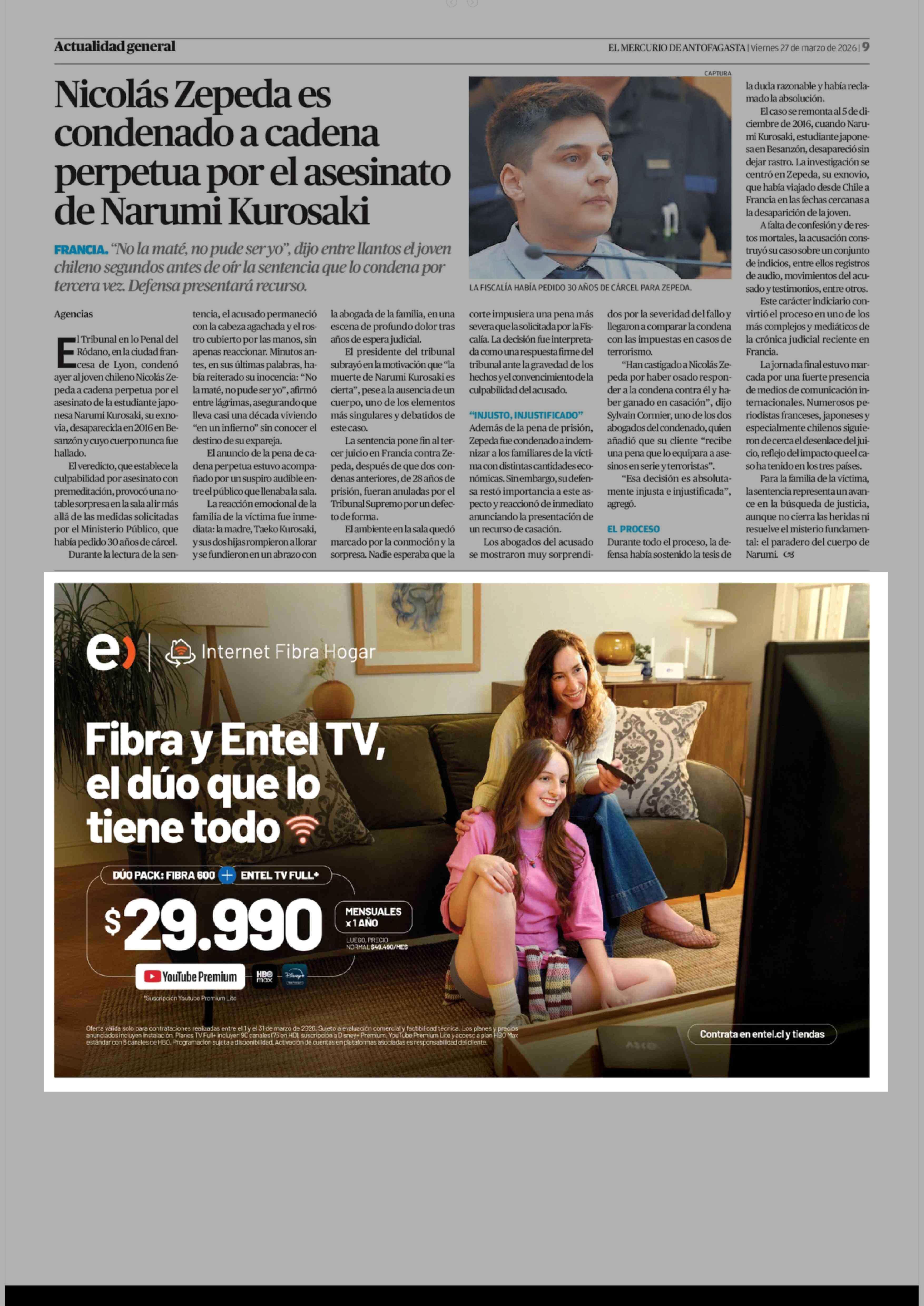 Aviso Telecomunicaciones: ENTEL 27-03-2026 El Mercurio de Antofagasta |