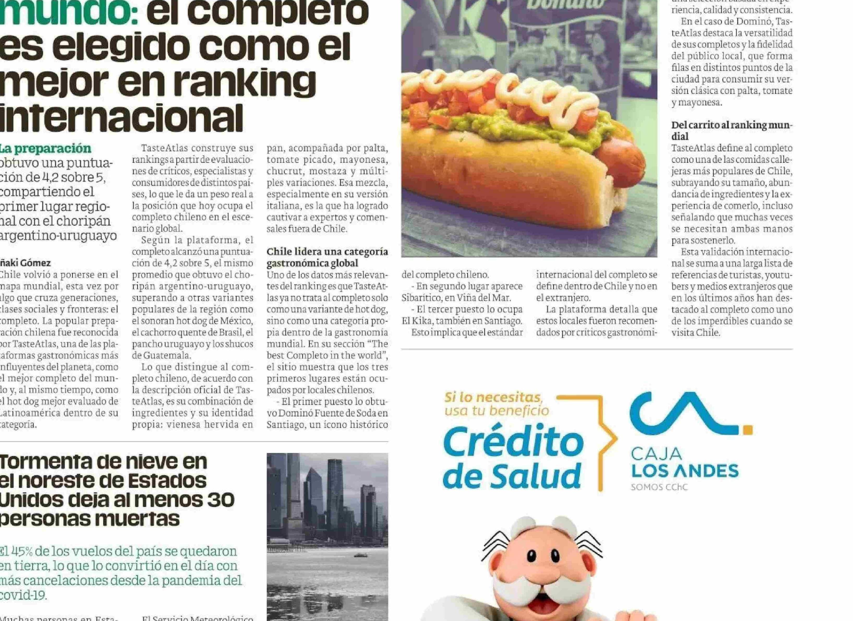 Título: Chile conquista el mundo: el completo es elegido como el mejor en ranking internacional