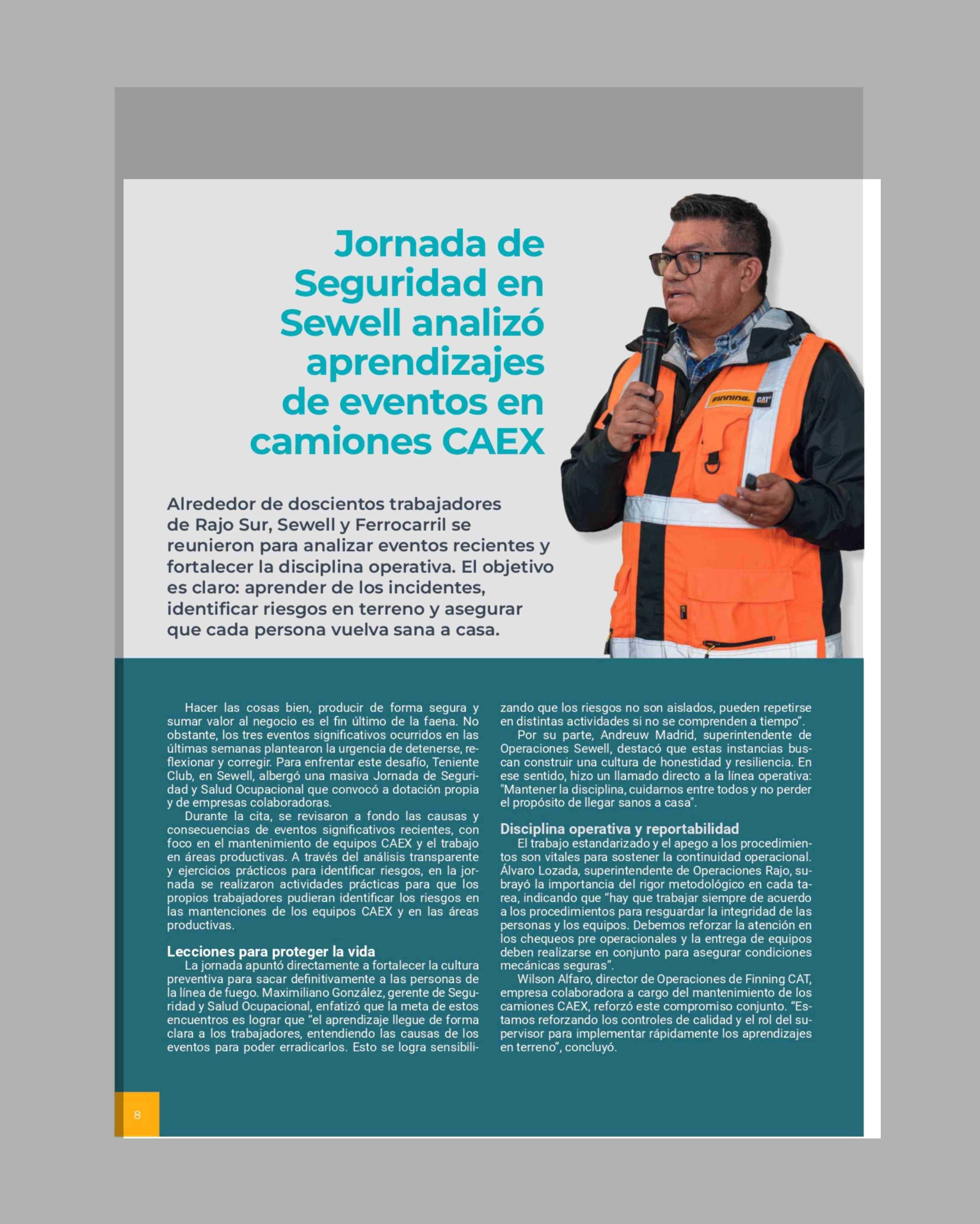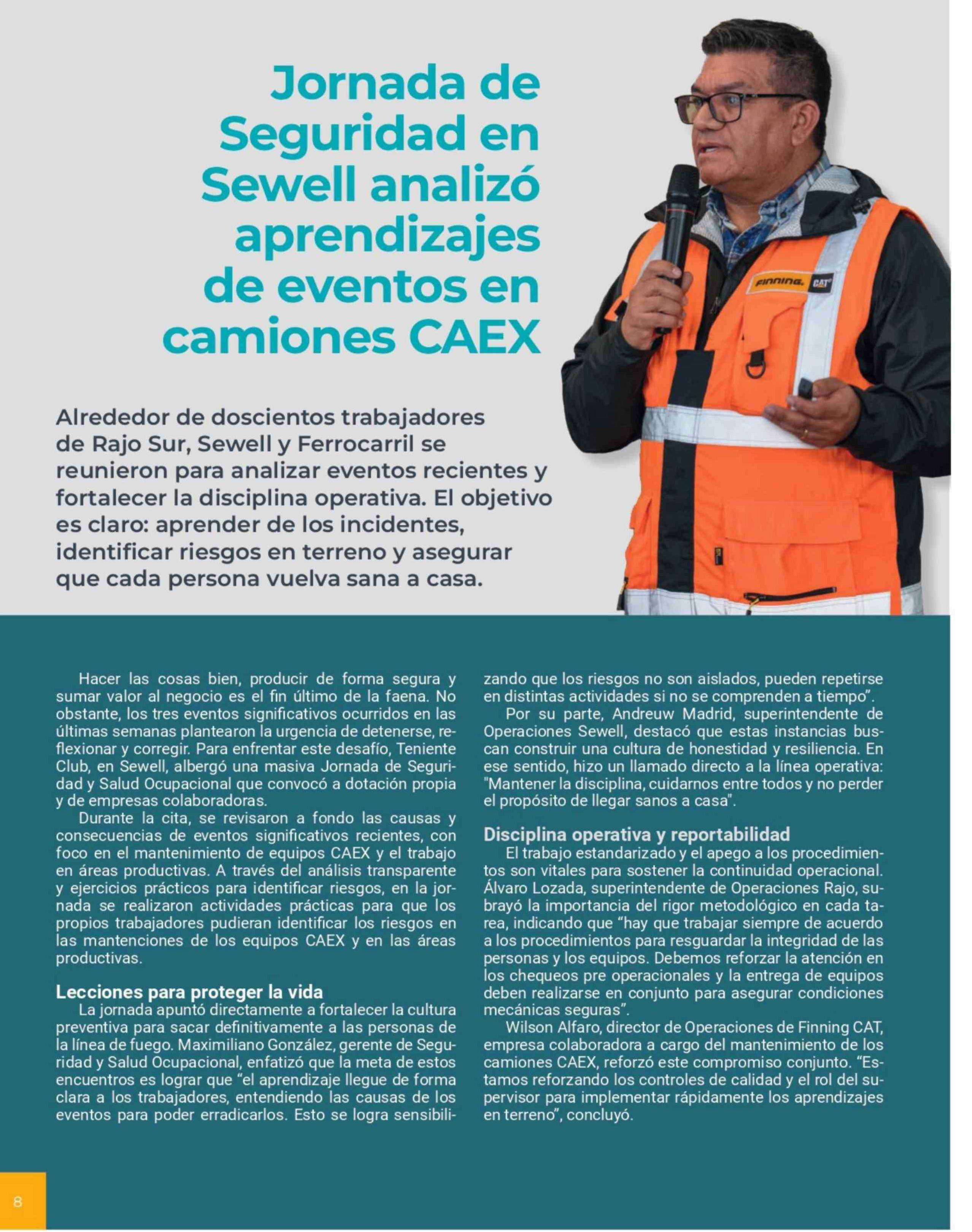 Título: Jornada de Seguridad en Sewell analizó aprendizajes de eventos en camiones CAEX