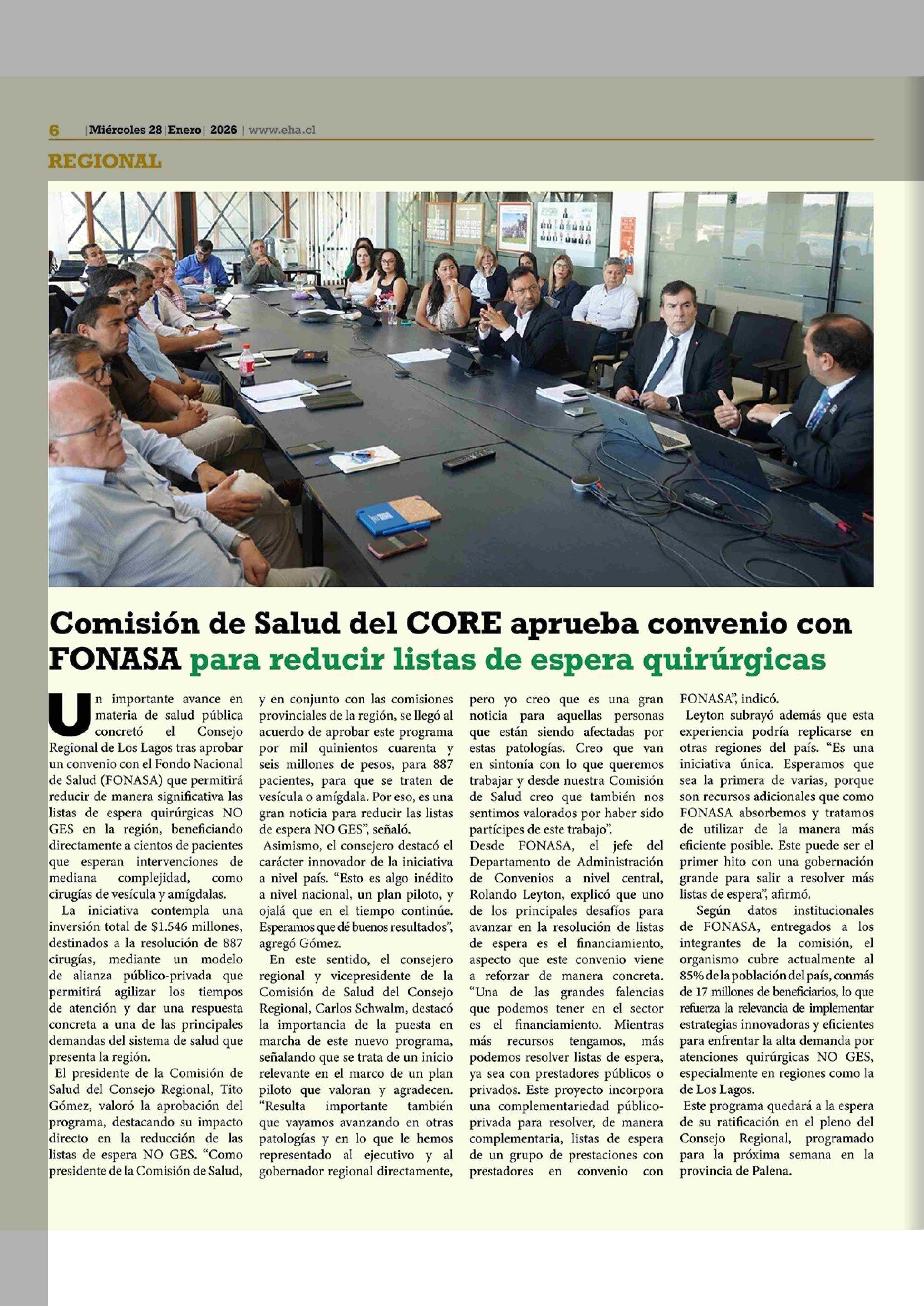 Título: Comisión de Salud del CORE aprueba convenio con FONASA para reducir listas de espera quirúrgicas