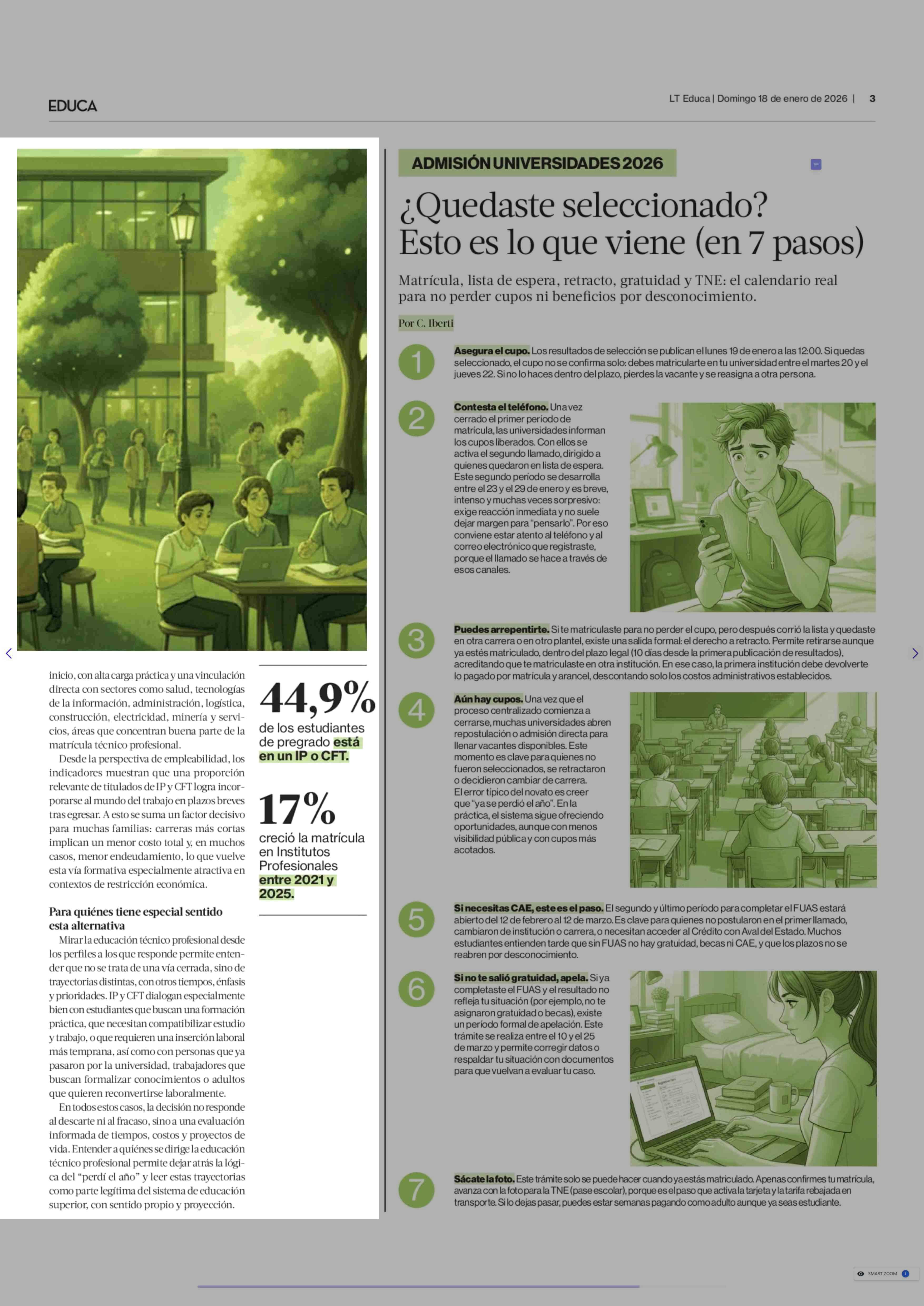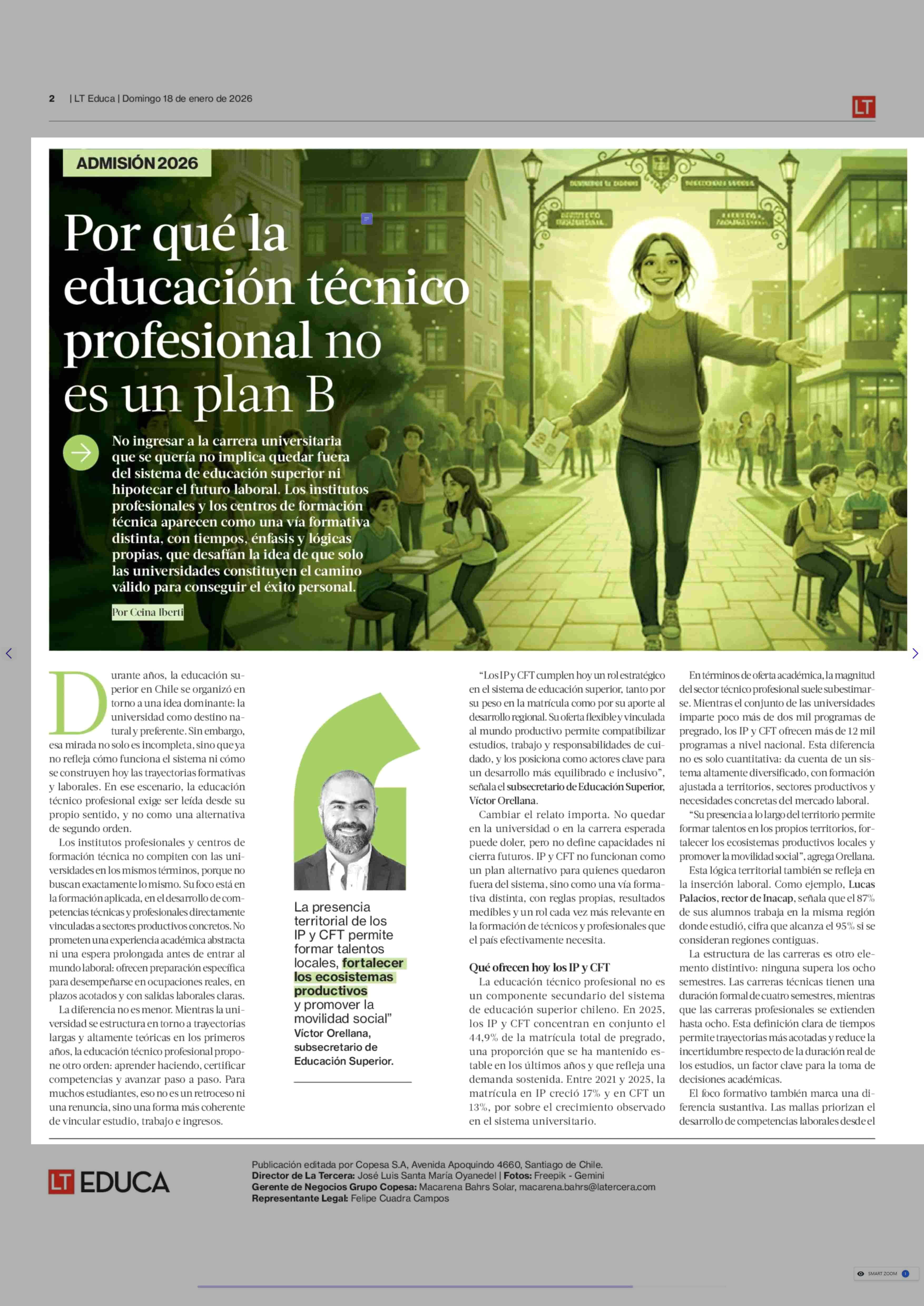 Por qué la educación técnico profesional no es un plan B 18-01-2026 La Tercera |