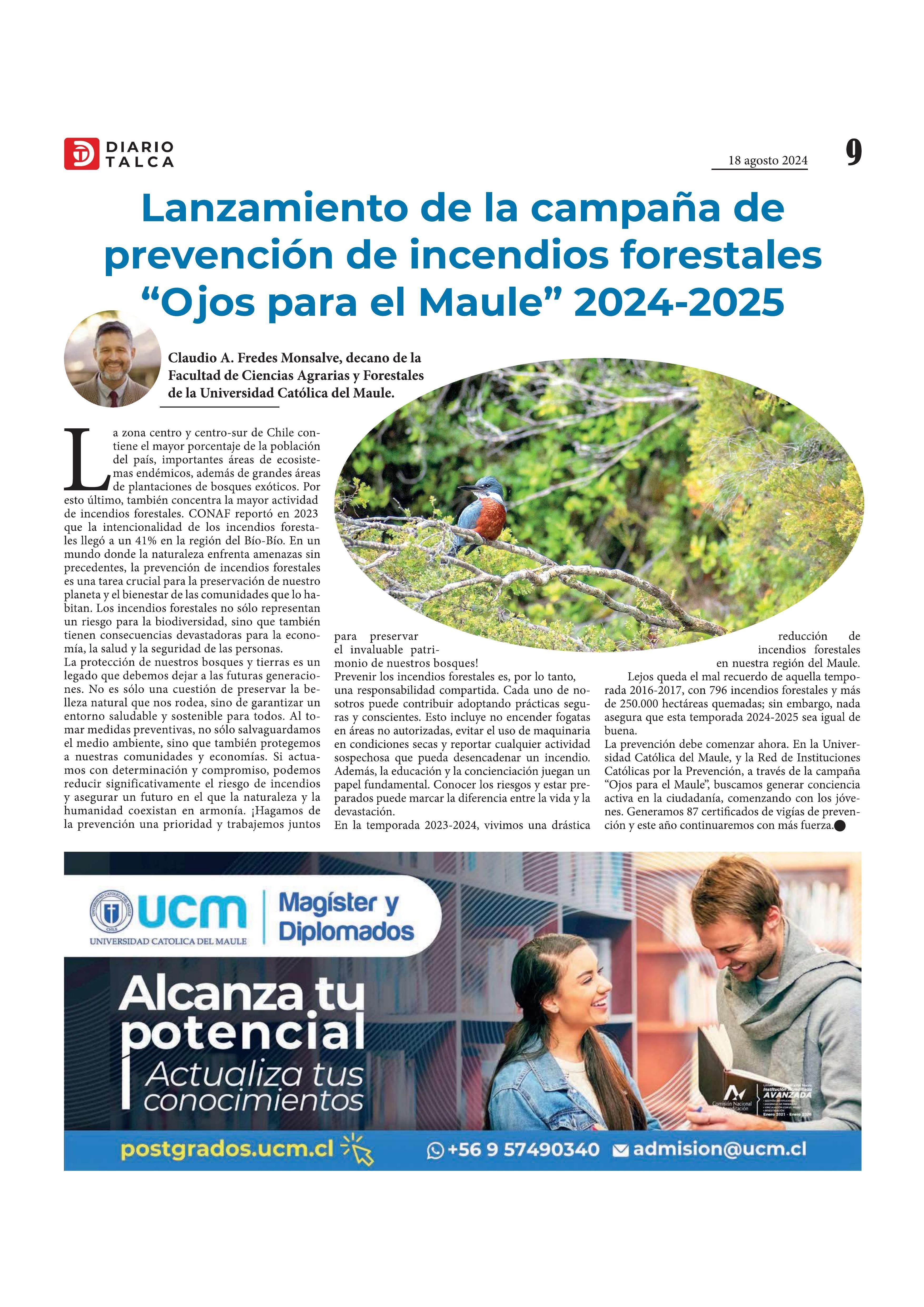 Lanzamiento de la campaña de prevención de incendios forestales -“Ojos para el Maule” 2024-2025 18-08-2024 Diario Talca |