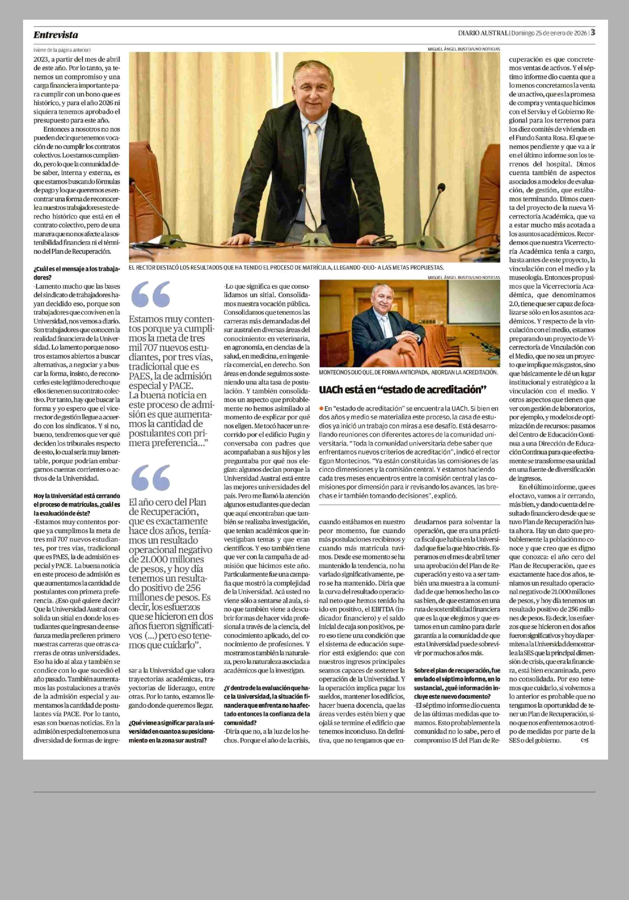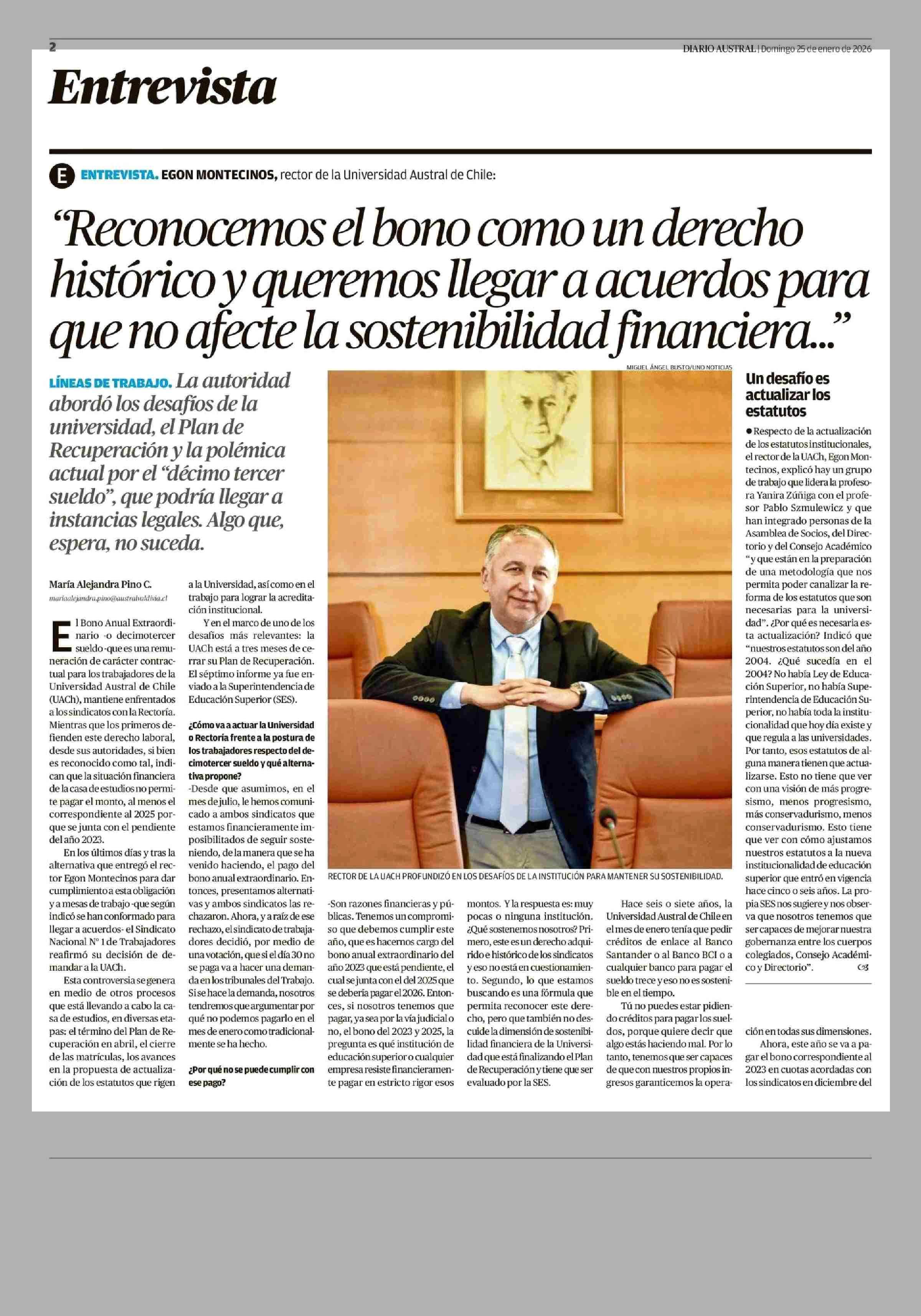 'Reconocemos el bono como un derecho histórico y queremos llegar a acuerdos para que no afecte la sostenibilidad financiera ... " 25-01-2026 Diario Austral Región de Los Ríos |