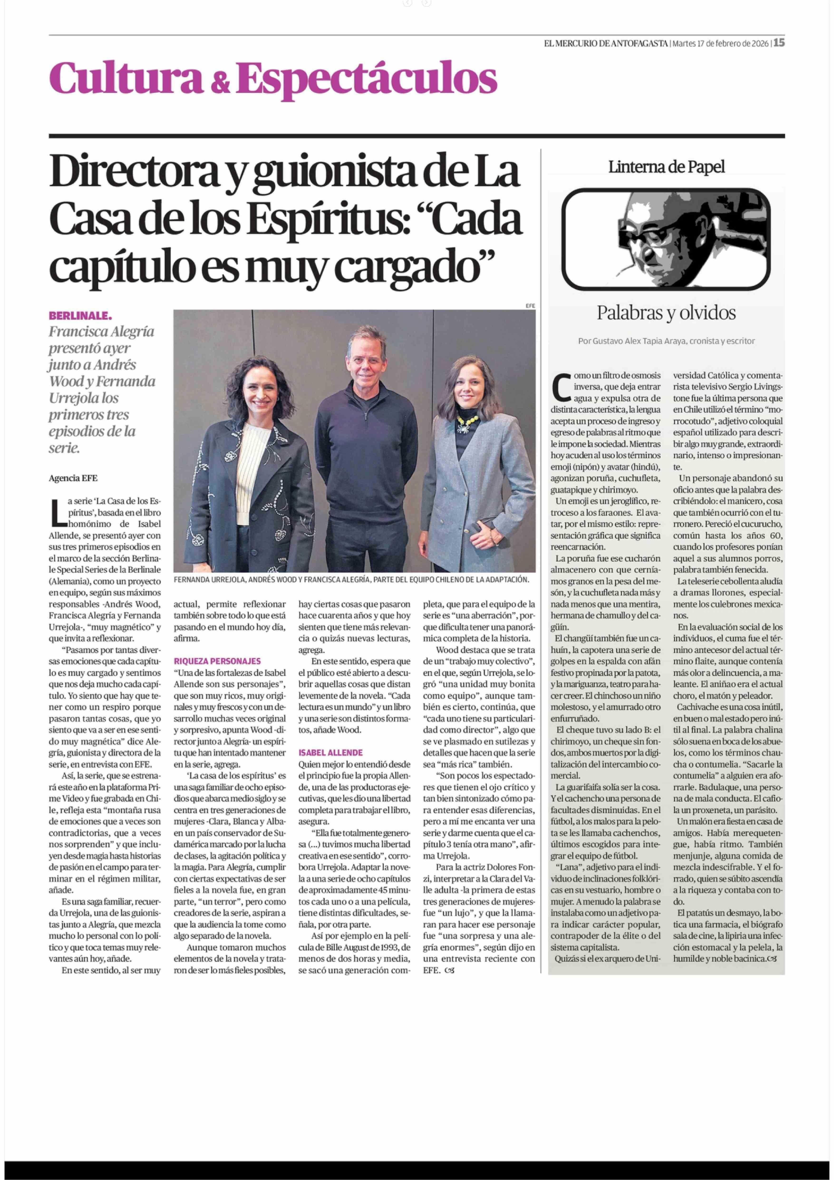 Palabras y olvidos 17-02-2026 El Mercurio de Antofagasta |