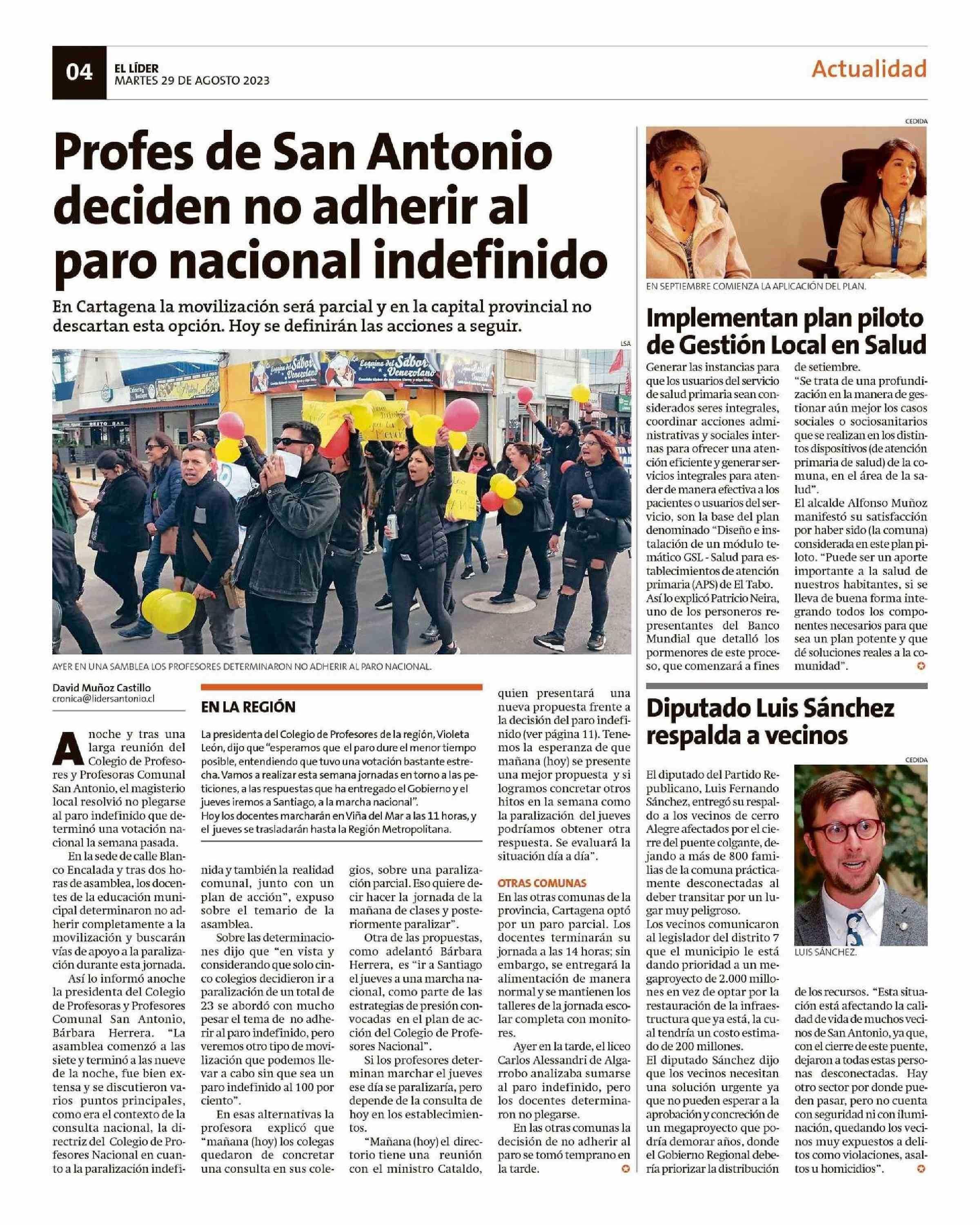 Implementan plan piloto de Gestión Local en Salud 29-08-2023 El Líder |