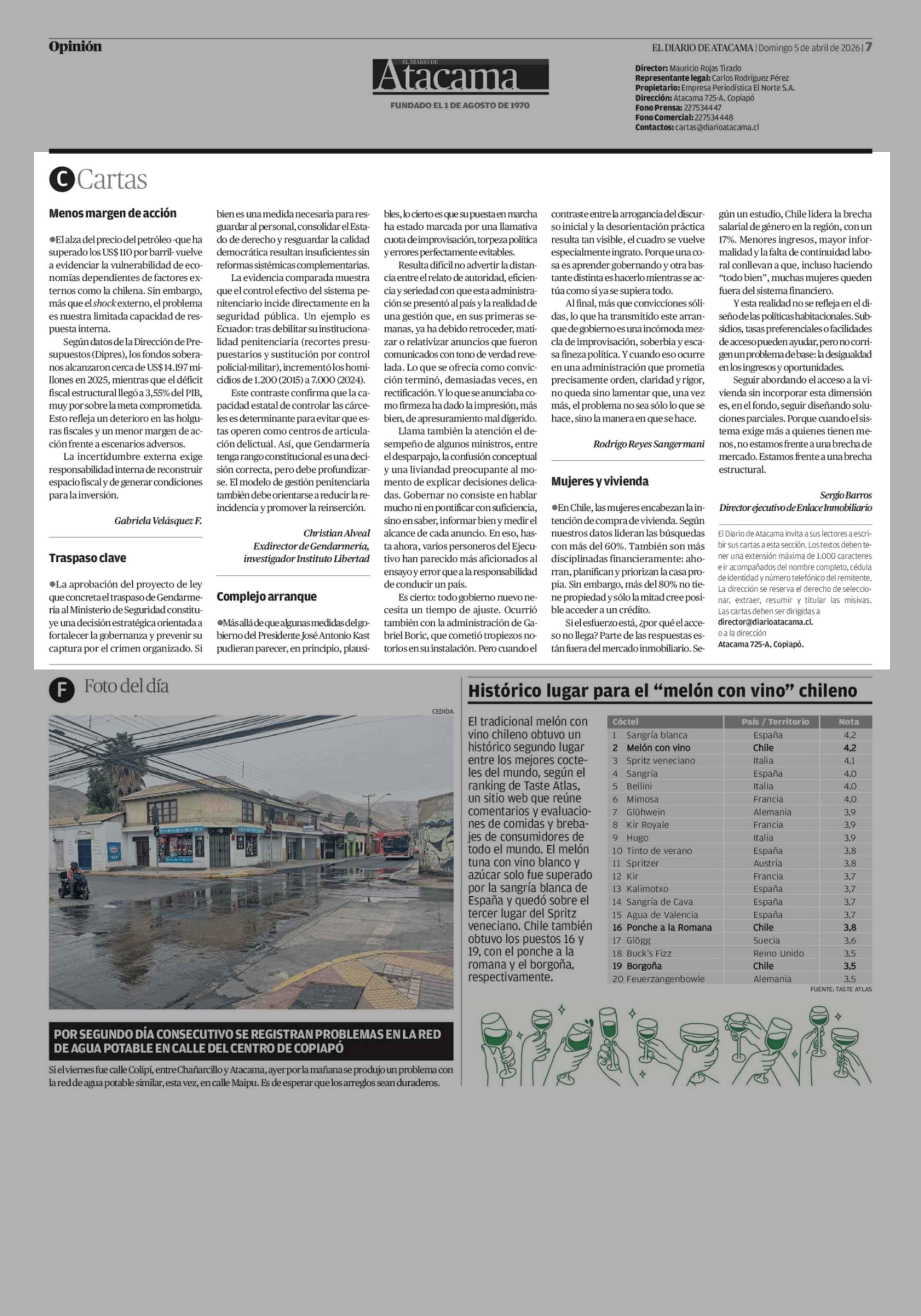 Cartas: Traspaso clave 05-04-2026 El Diario de Atacama |