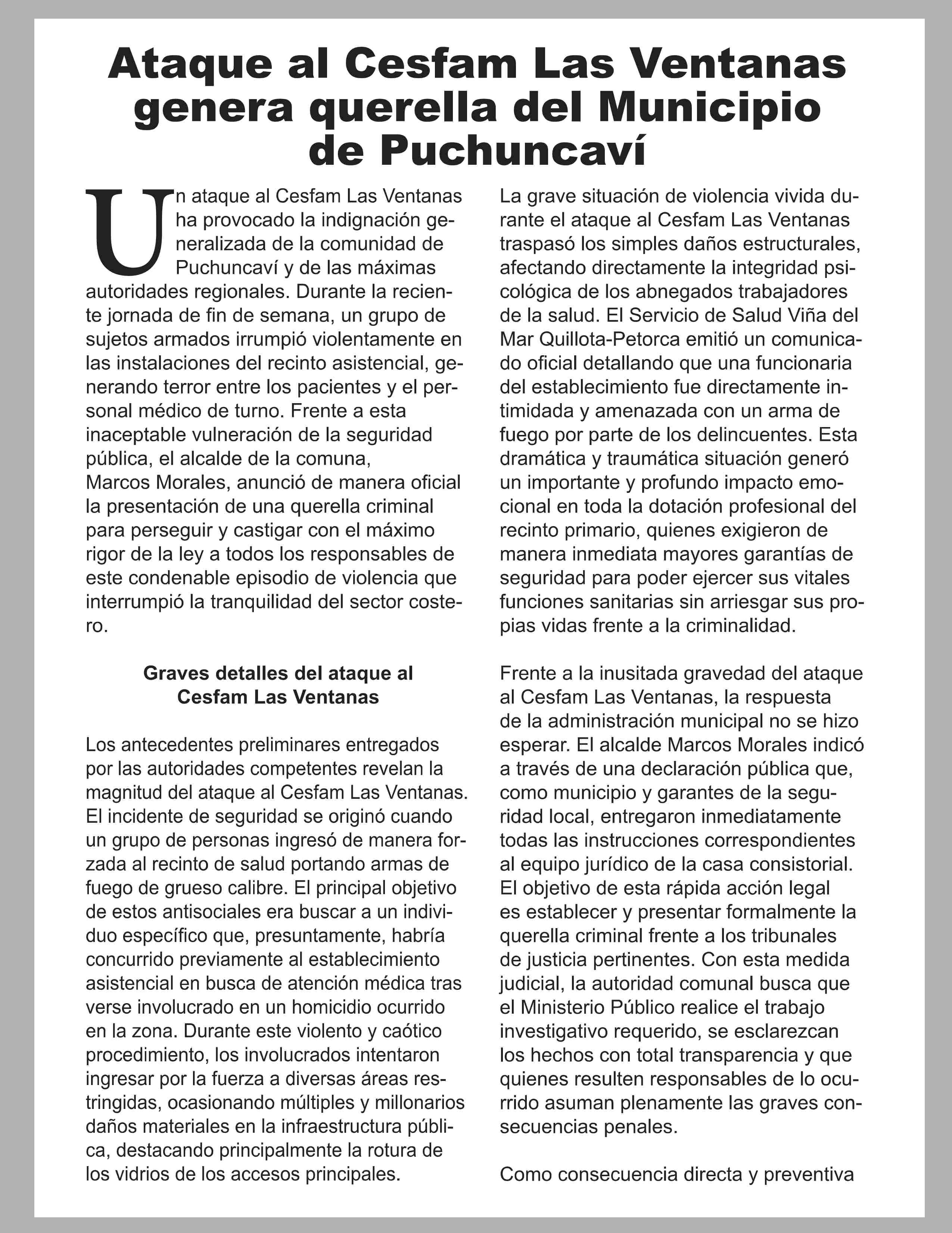 | Título: | Ataque al Cesfam Las Ventanas genera querella del Municipio de Puchuncaví |