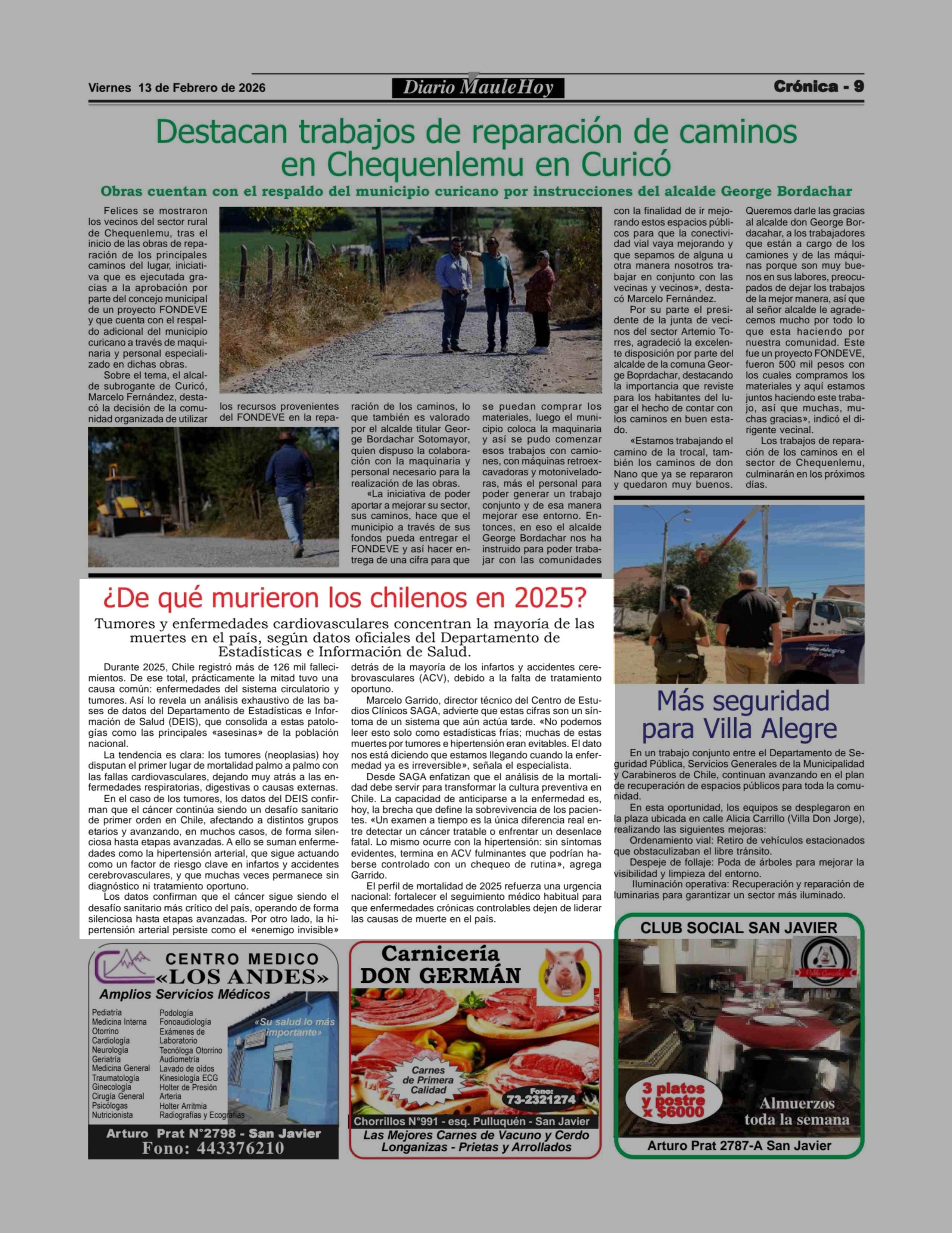 ¿De qué murieron los chilenos en 2025? 13-02-2026 Maule Hoy |