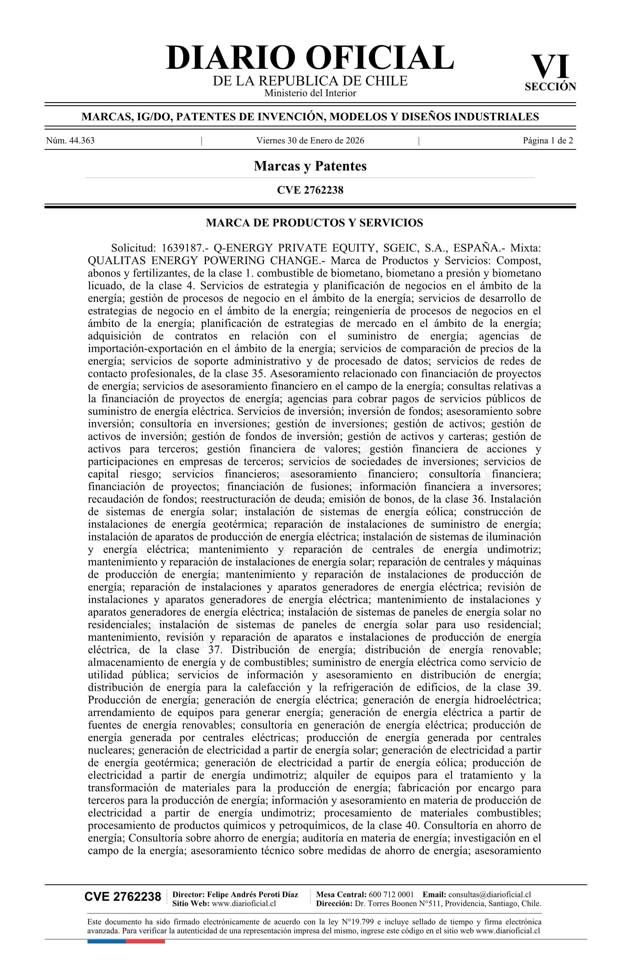 Fuente: Diario Oficial Edición Electrónica (Diario Oficial de Chile - 6 Marcas Y Patentes) Página(s): 96-97
