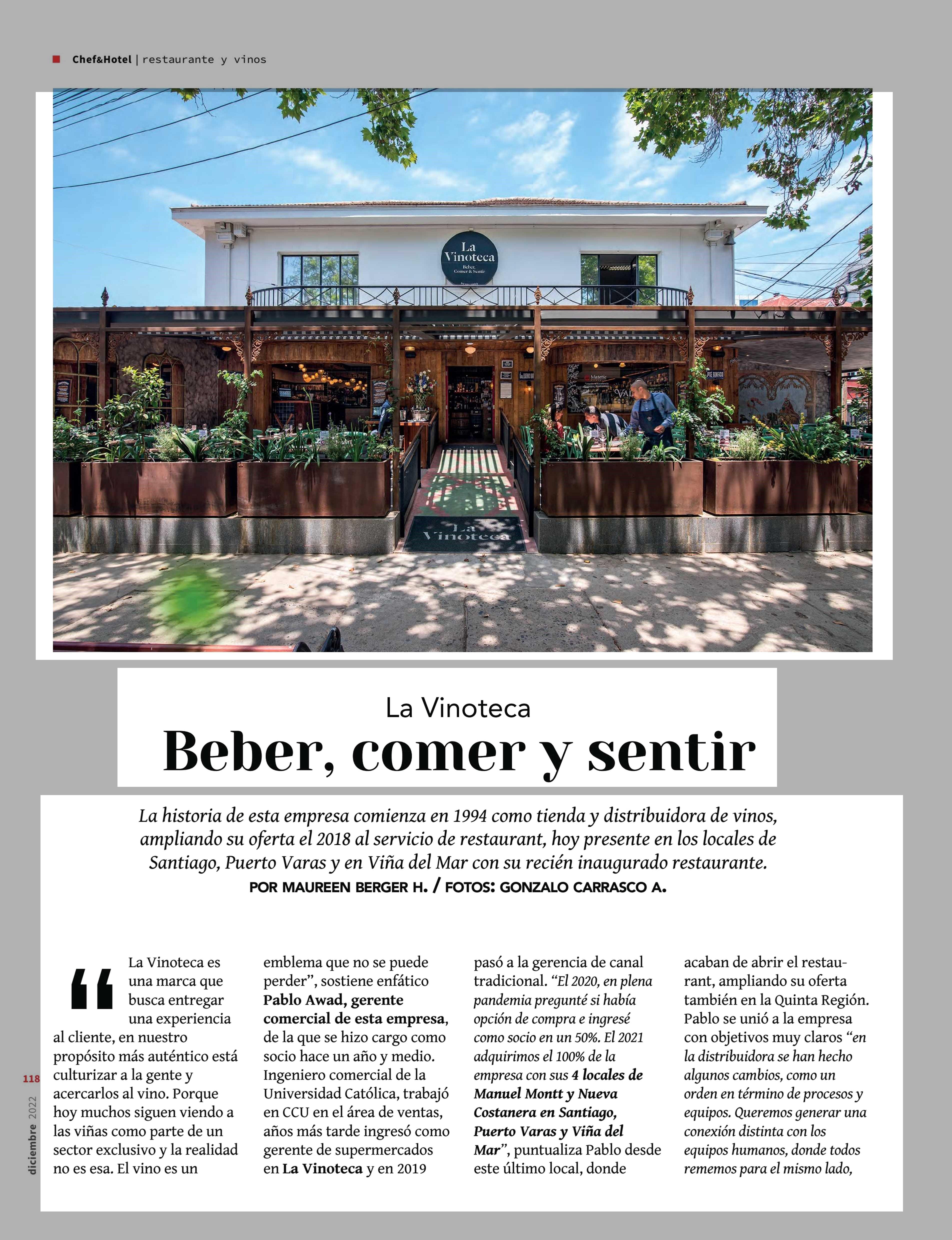 La Vinoteca Beber, comer y sentir 31-12-2022 Revista Chef & Hotel |