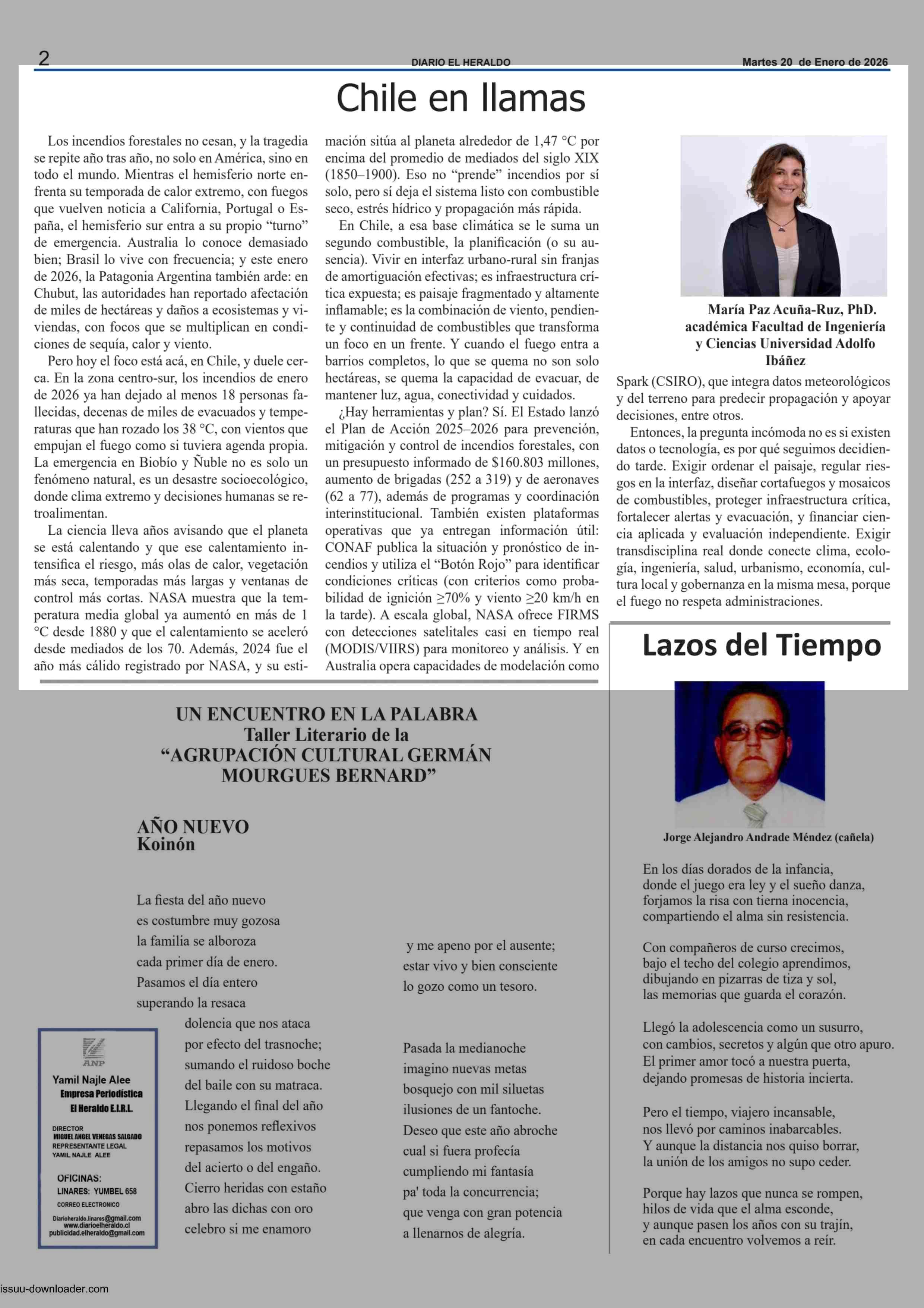 Columnas de Opinión: Chile en llamas 20-01-2026 El Heraldo |