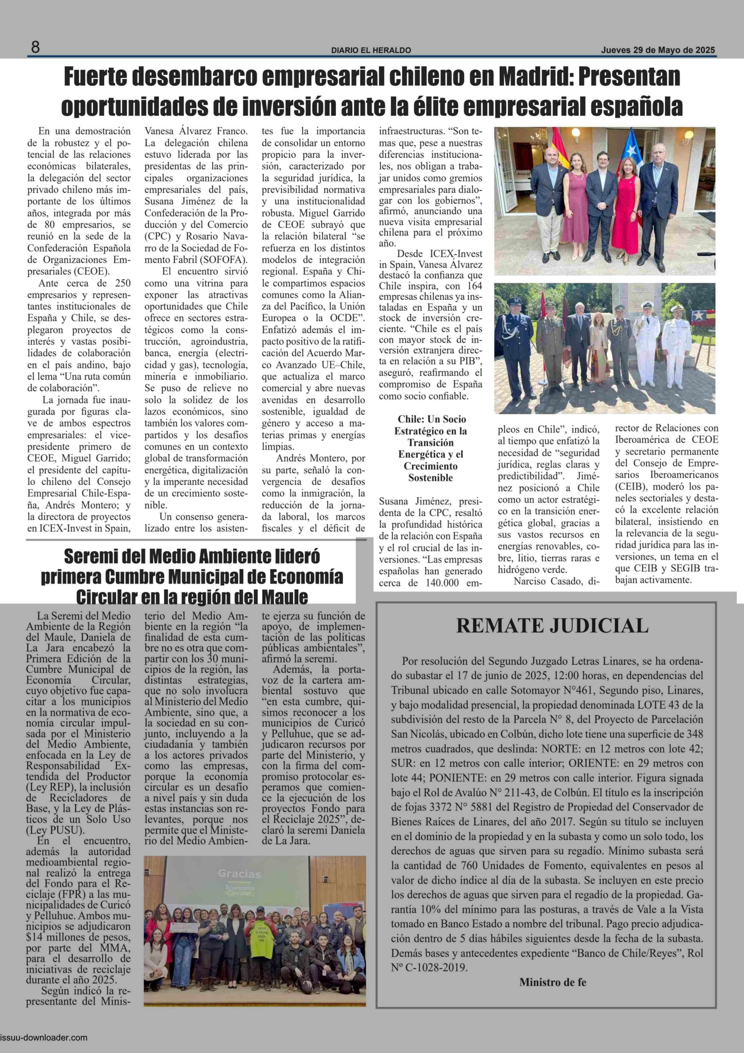 Fuerte desembarco empresarial chileno en Madrid: Presentan oportunidades de inversión ante la élite empresarial española 29-05-2025 El Heraldo |