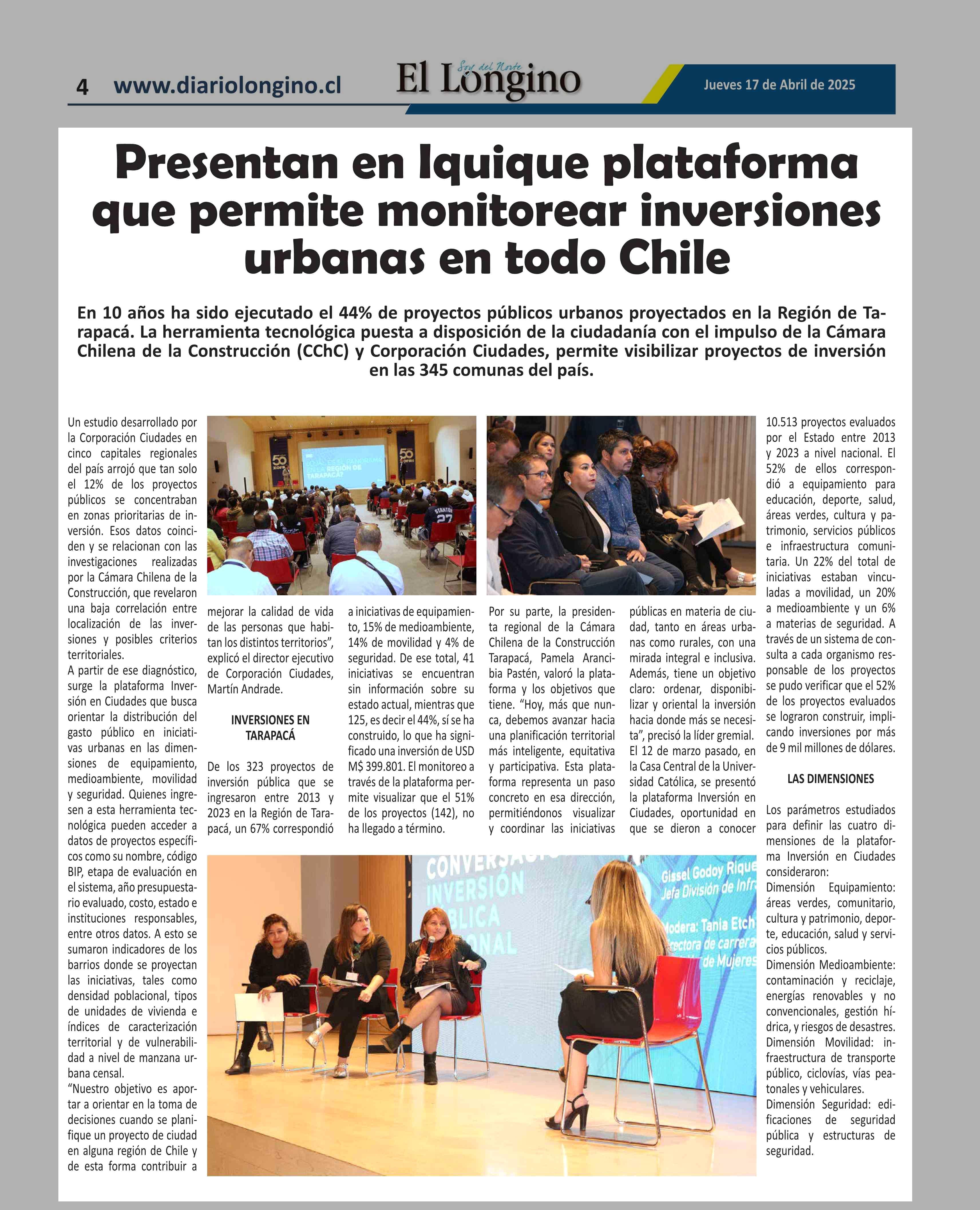 Presentan en Iquique plataforma que permite monitorear inversiones urbanas en todo Chile 17-04-2025 El Longino |