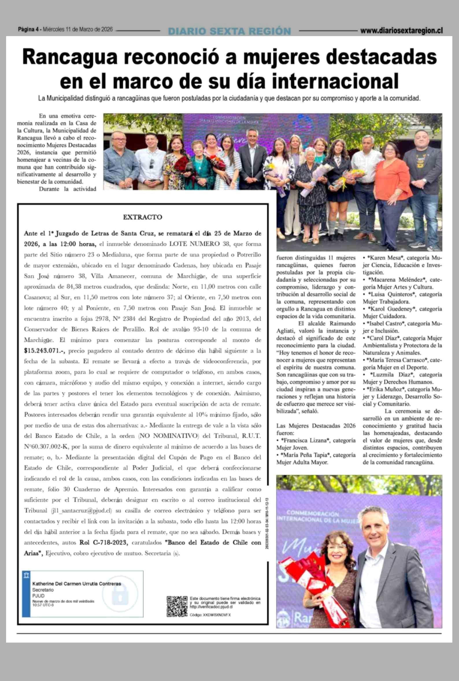 | Fecha: | 11-03-2026 | Sector: | Noticia general | Región: | Región del Libertador General Bernardo O'Higgins |