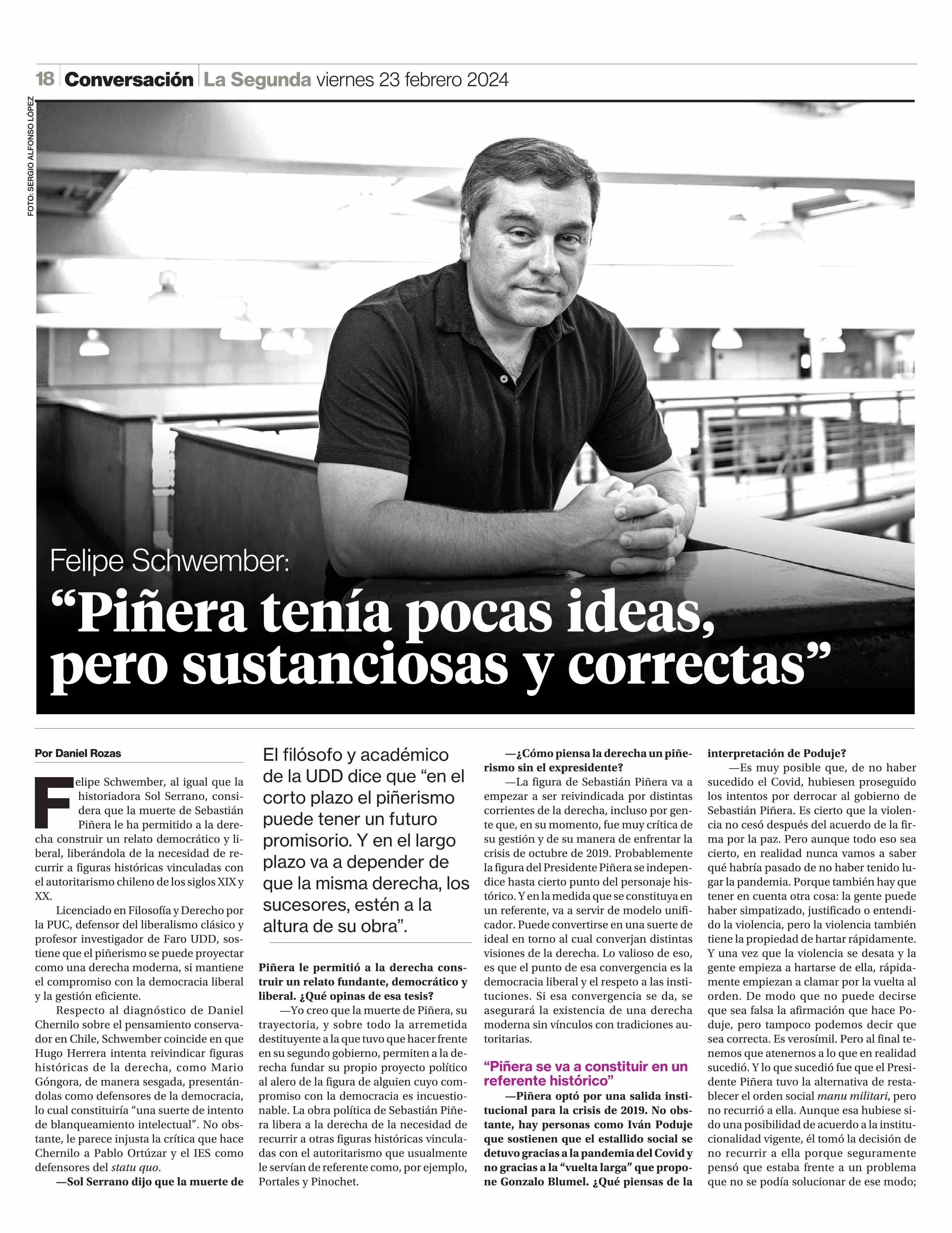 “Piñera tenía pocas ideas, pero sustanciosas y correctas” 23-02-2024 La Segunda |