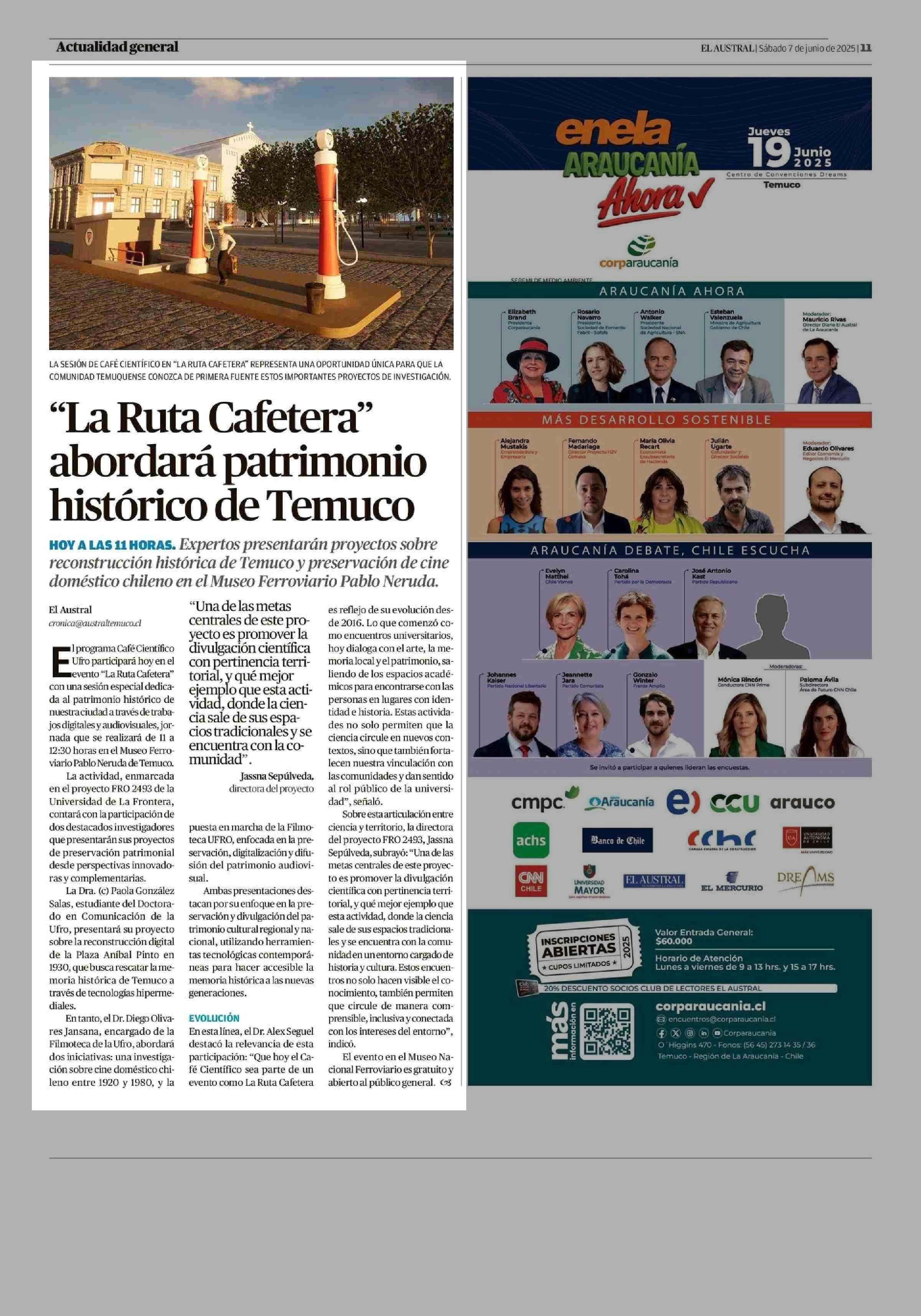 Título: "La Ruta Cafetera" abordará patrimonio histórico de Temuco