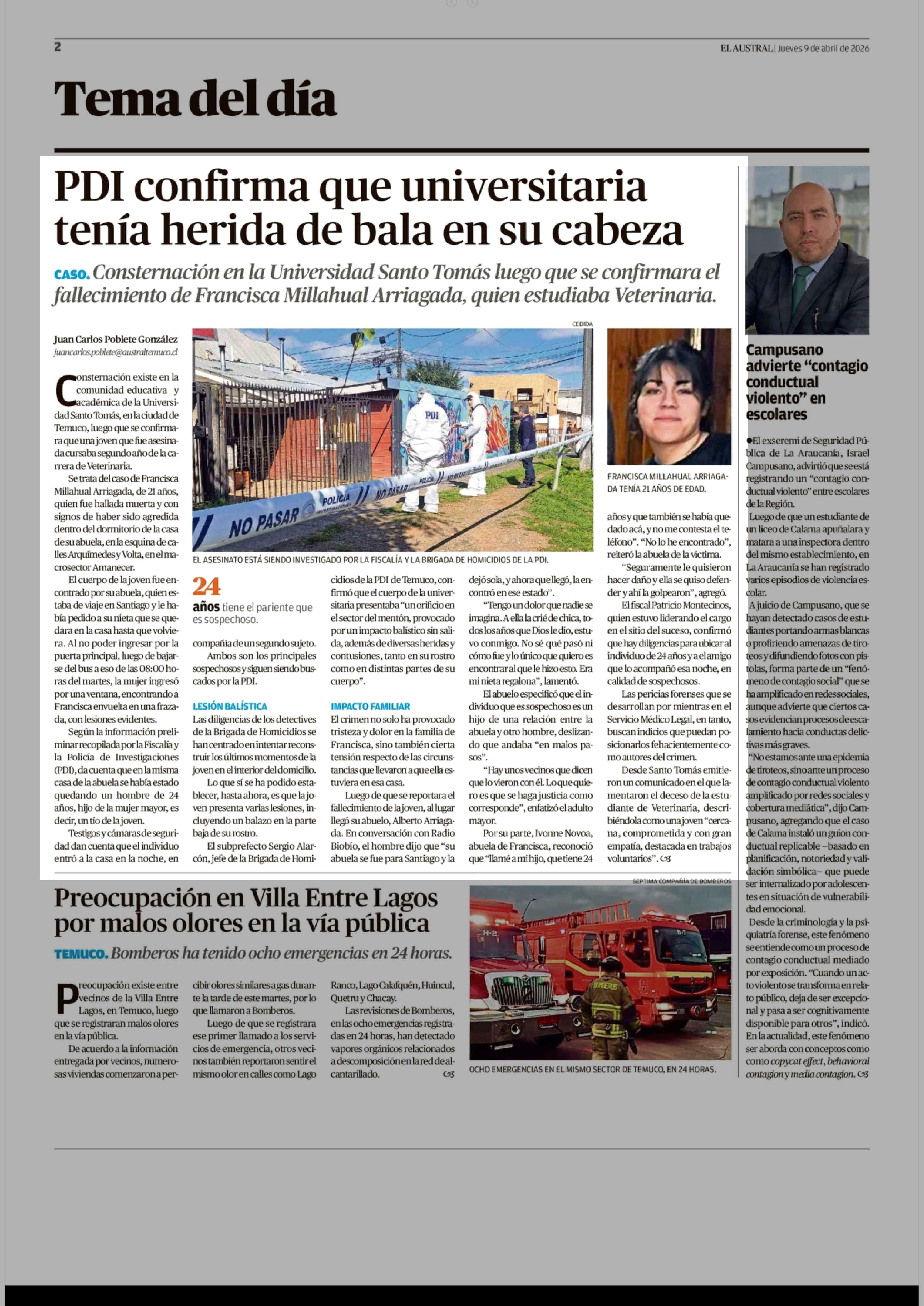 Fuente: El Austral de la Araucanía (El Austral de la Araucanía) Página(s): 2