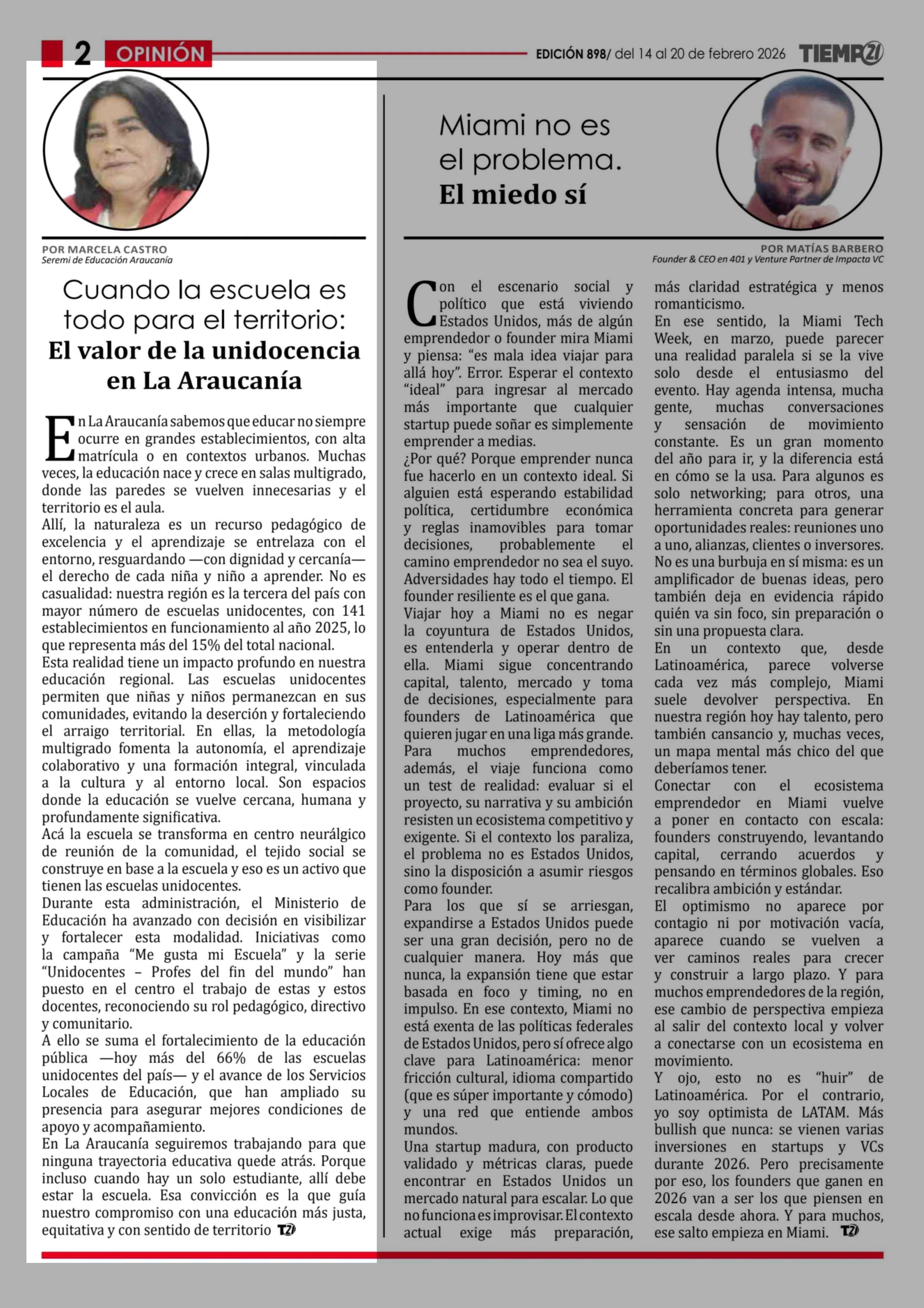 Columnas de Opinión: Cuando la escuela es todo para el territorio: El valor de la unidocencia en La Araucanía 14-02-2026 Tiempo 21 |