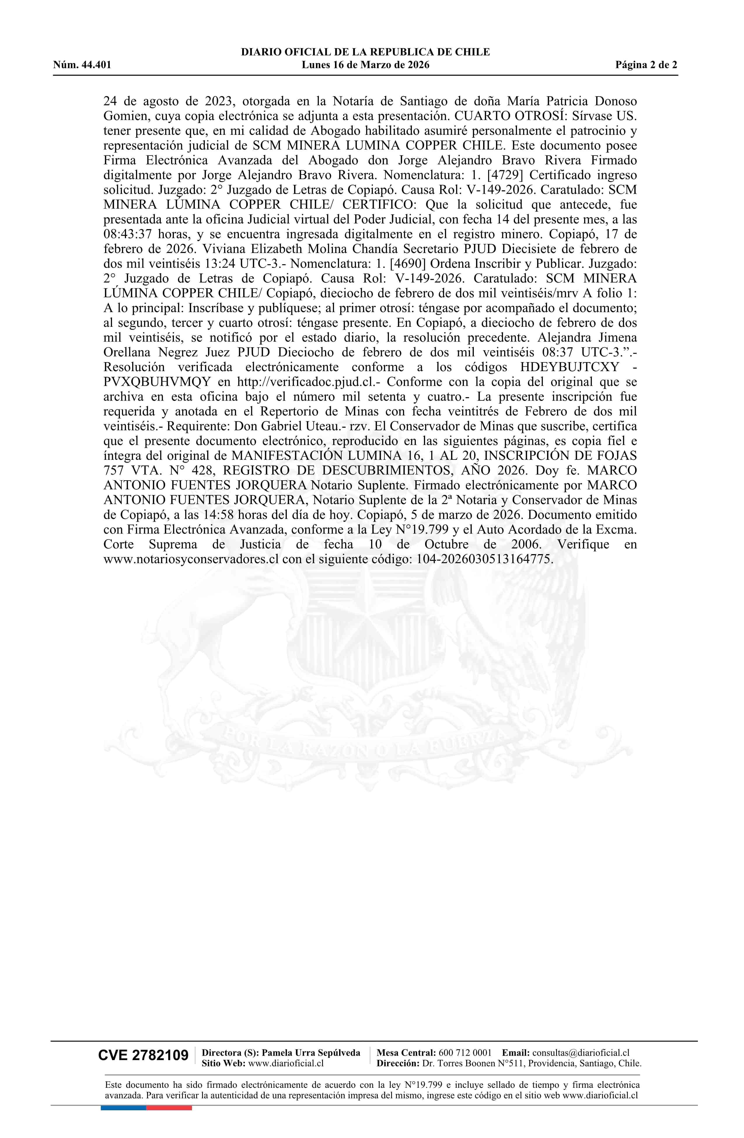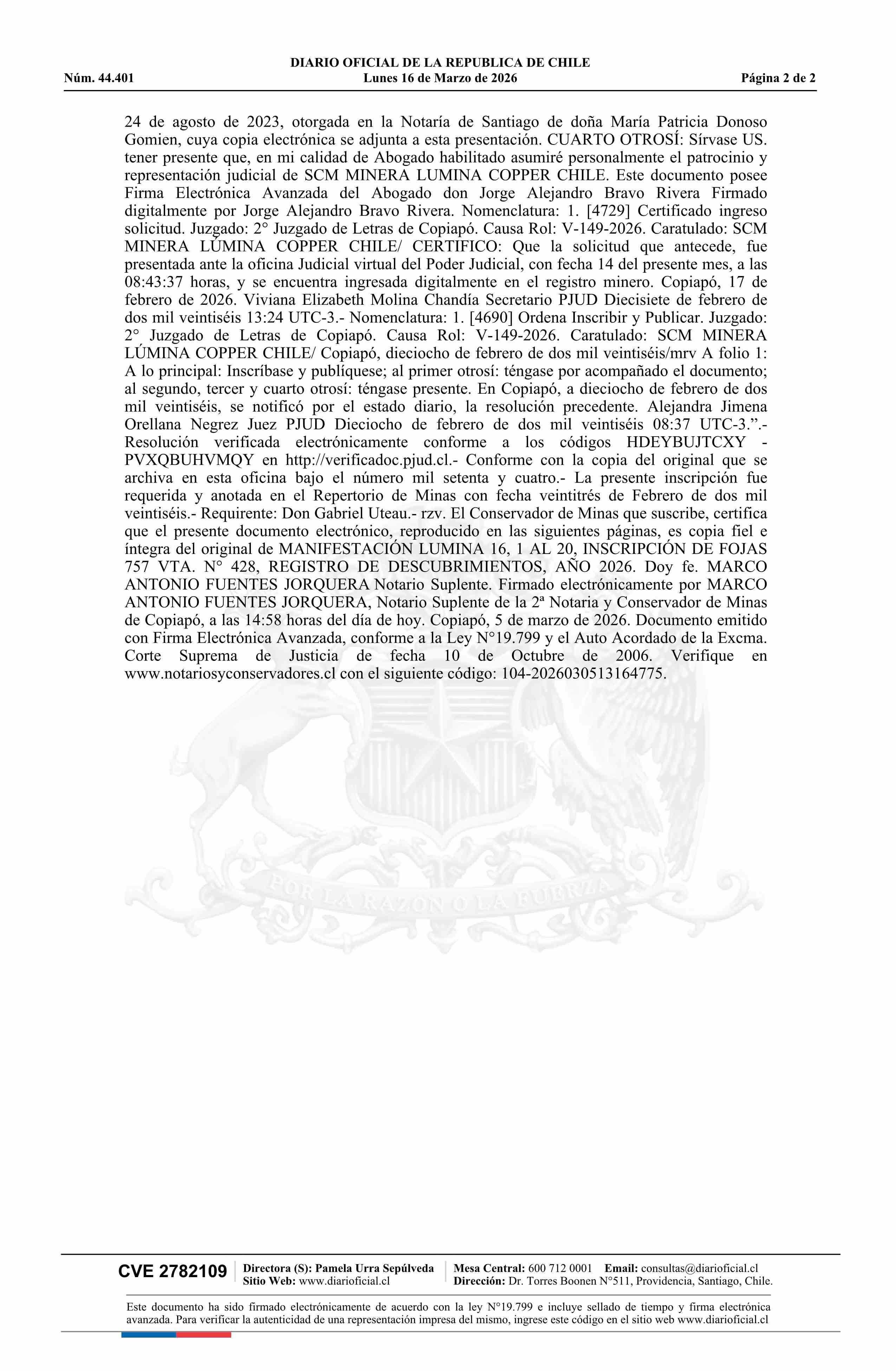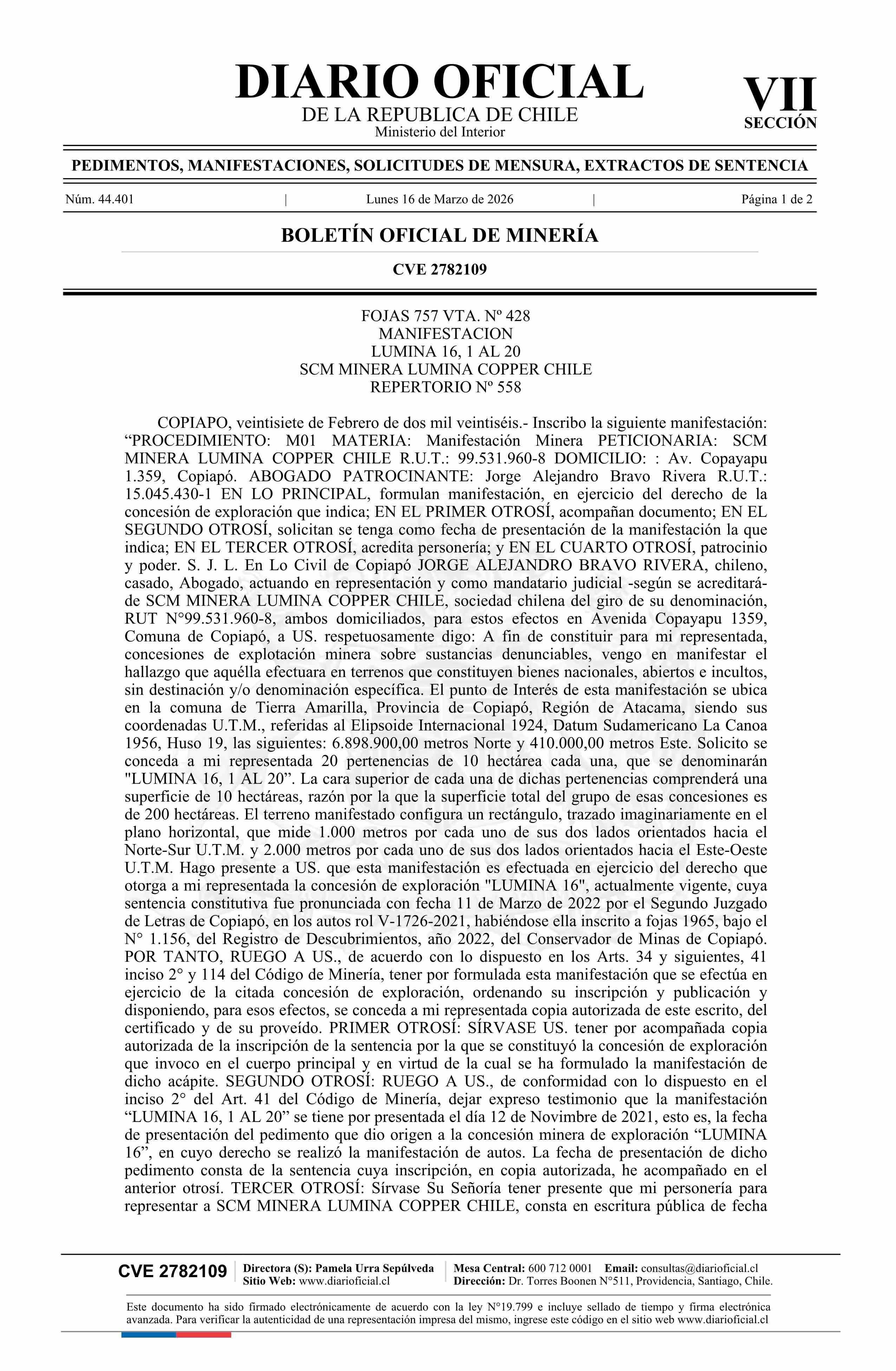 16-03-2026 DIARIO OFICIAL CHILE - BOLETÍN OFICIAL DE MINERÍA
