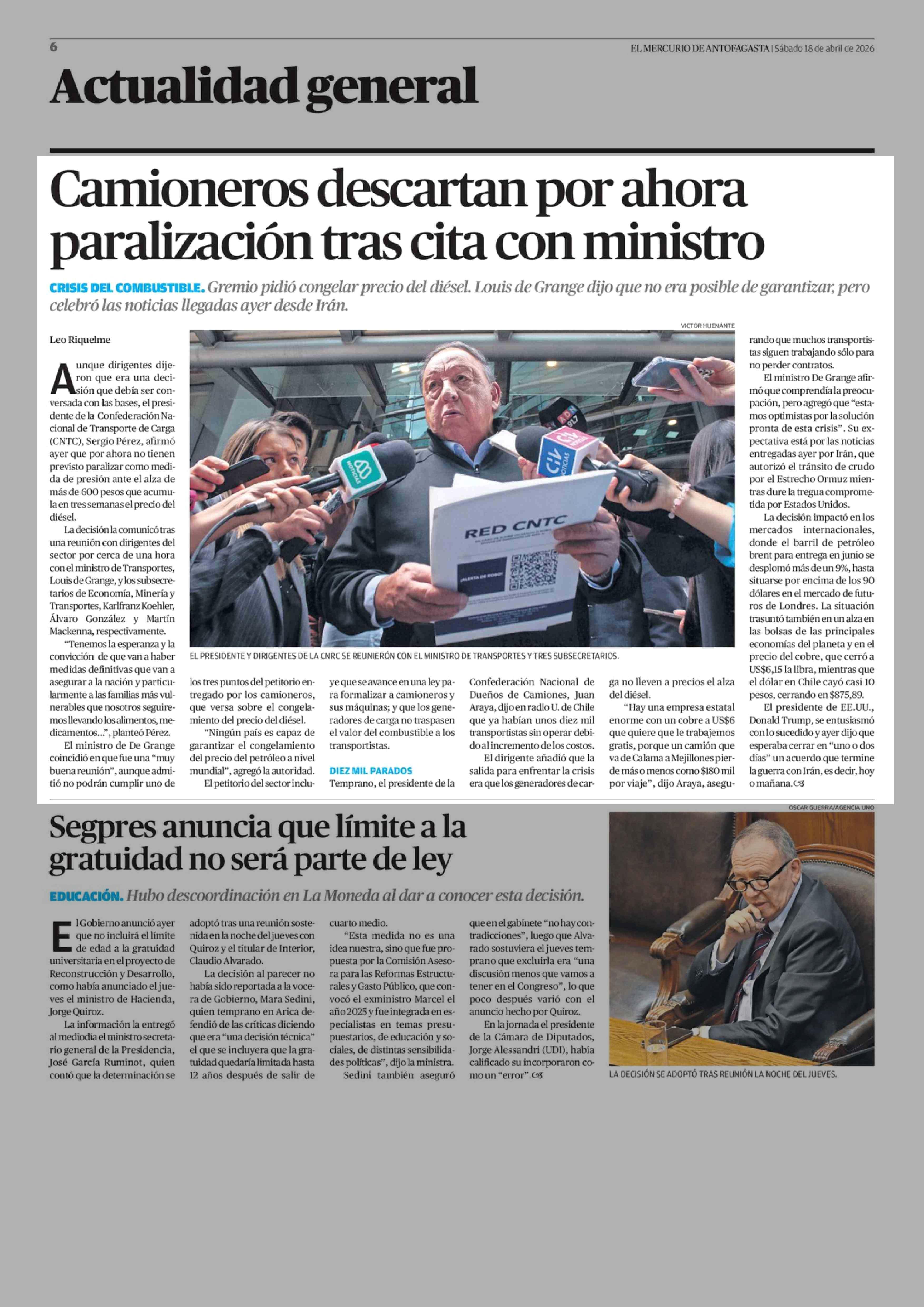 Título: Camioneros descartan por ahora paralización tras cita con ministro