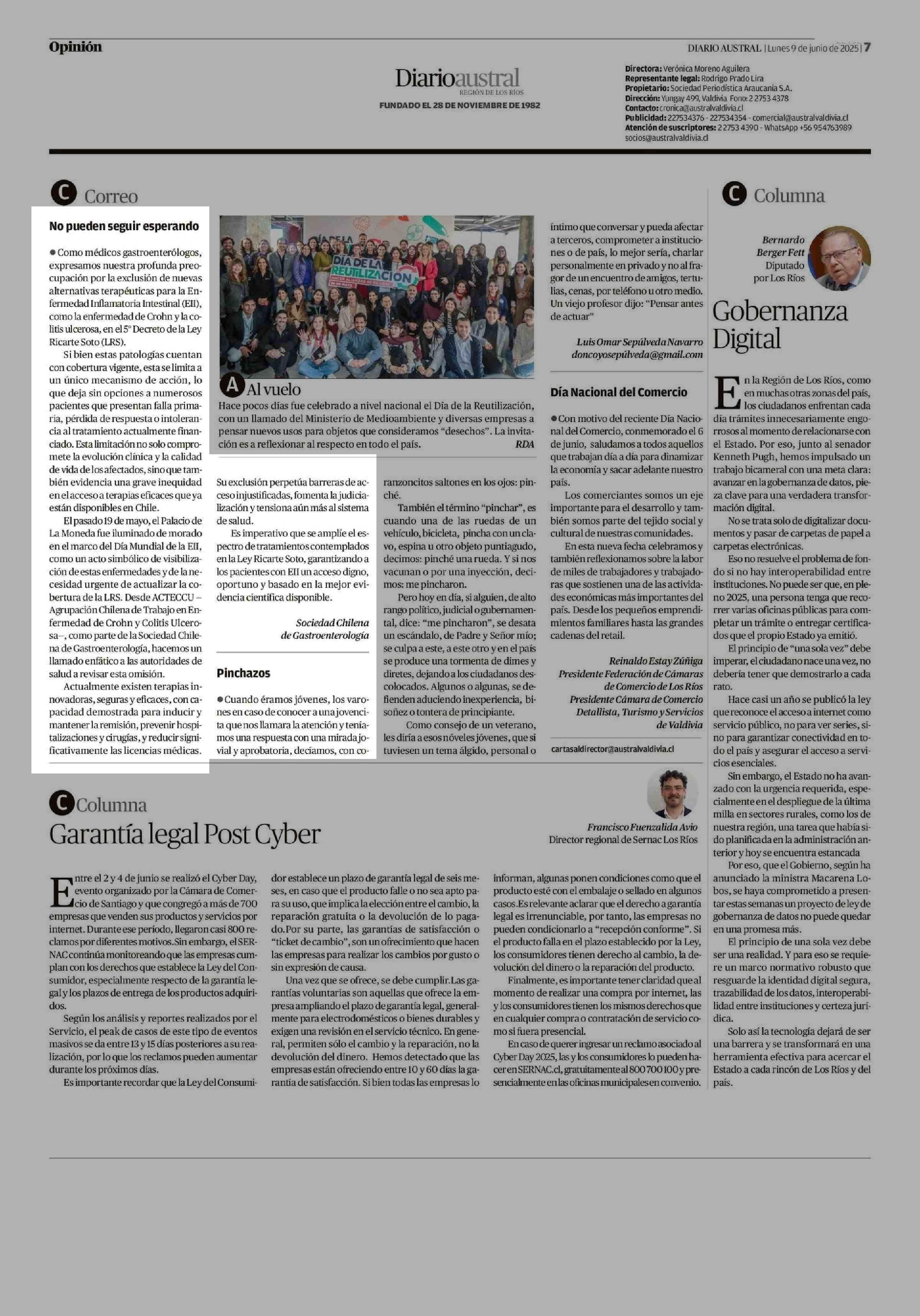 CARTAS: No pueden seguir esperando 09-06-2025 Diario Austral Región de Los Ríos |