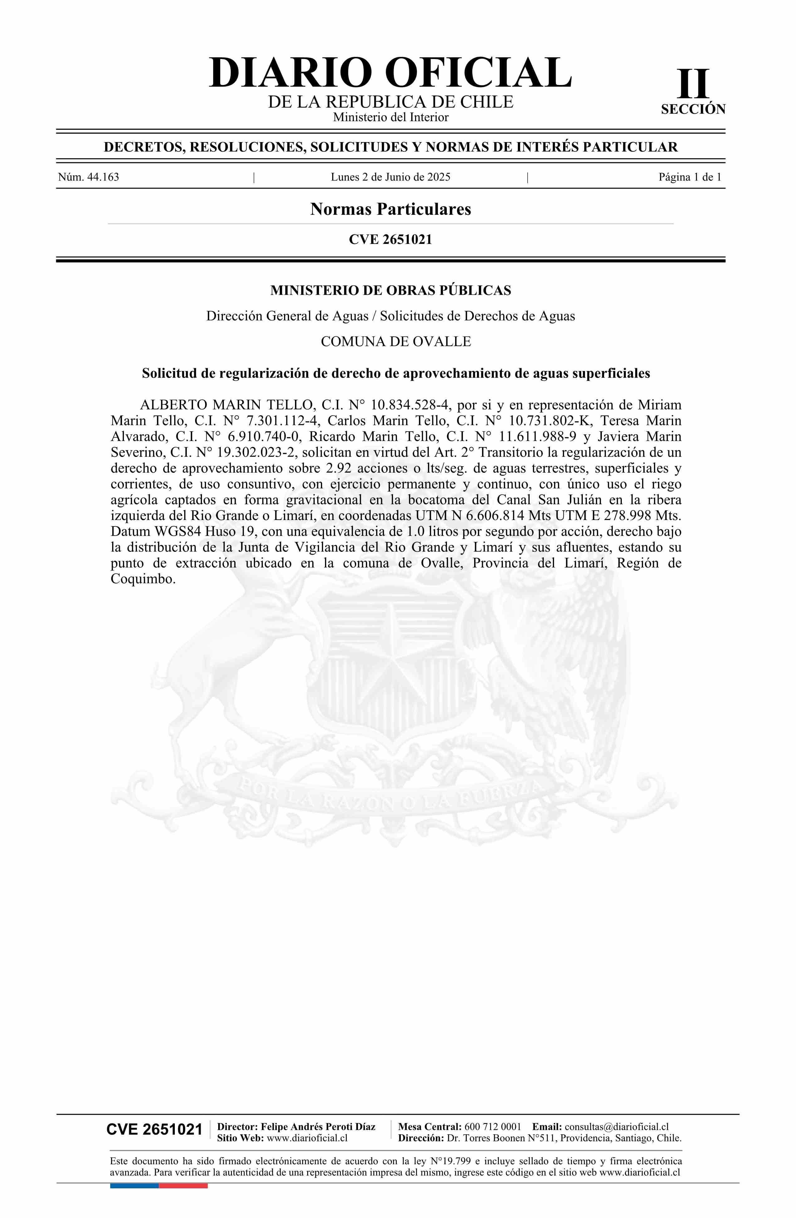 Solicitud Marín Tello Alberto 02-06-2025 Diario Oficial Edición Electrónica |