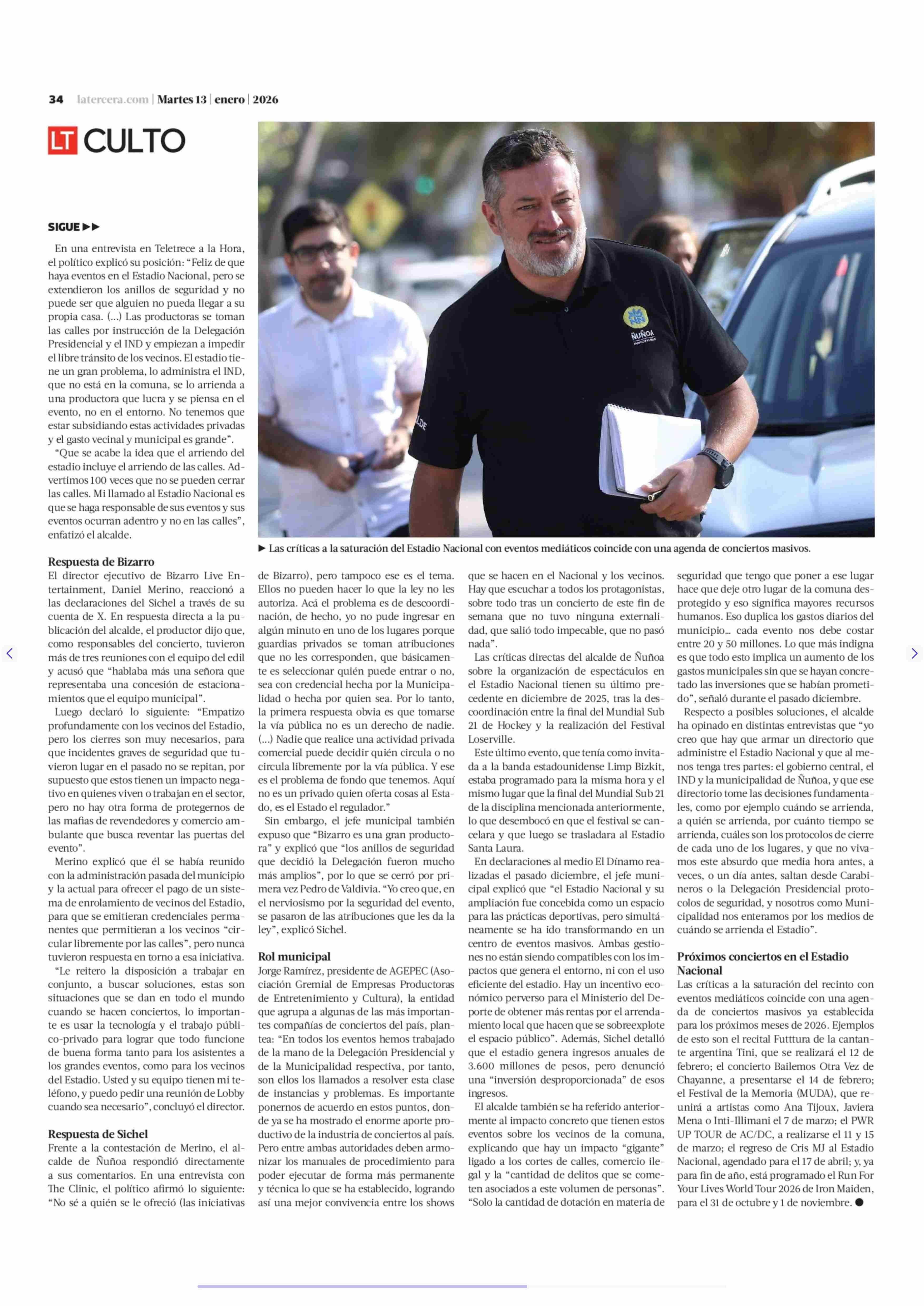 "Hay que escuchar a todos los protagonistas": la escena chilena de shows en alerta ante nueva disputa por el Nacional 13-01-2026 La Tercera |
