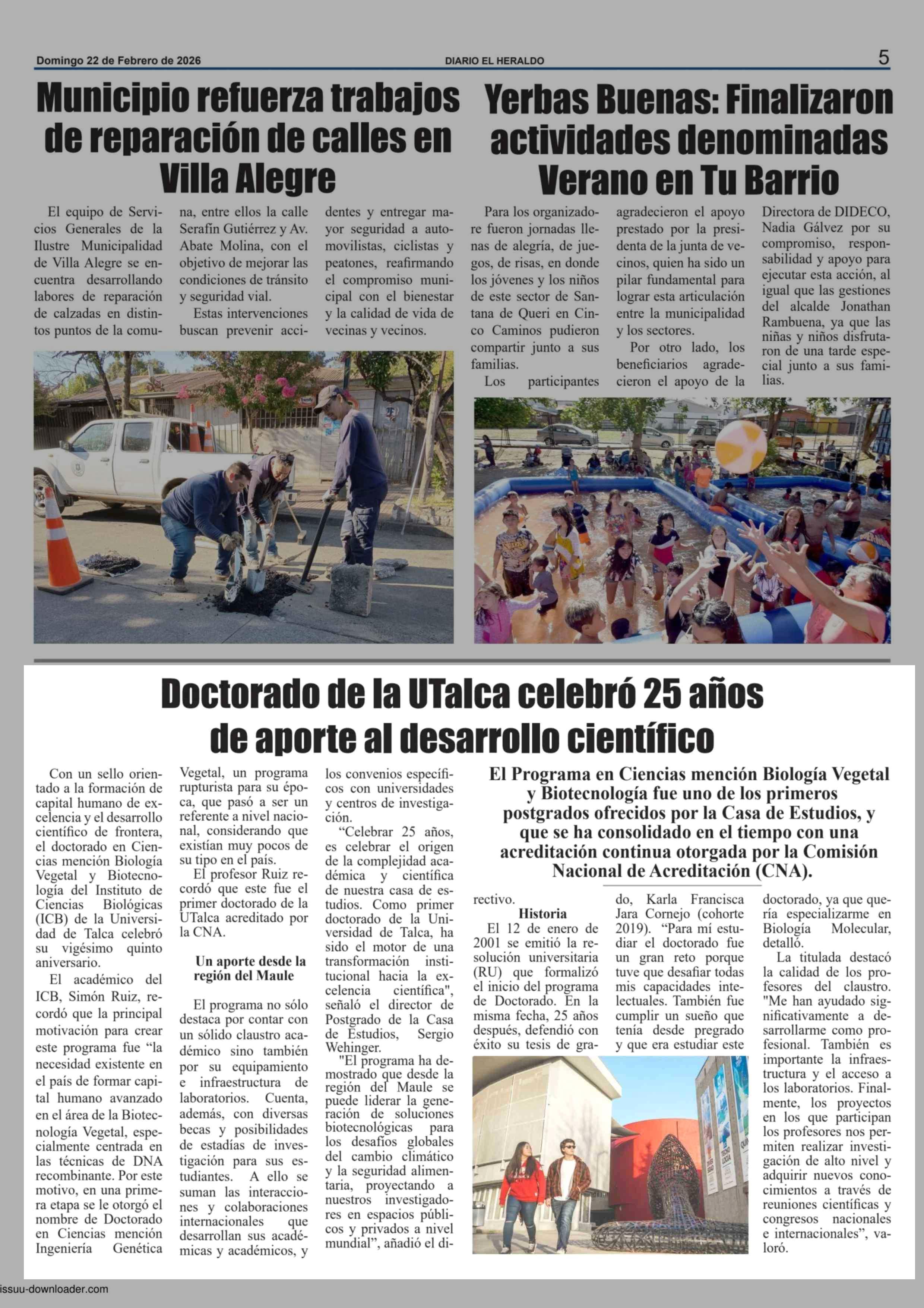 Doctorado de la UTalca celebró 25 años de aporte al desarrollo científico 22-02-2026 El Heraldo |