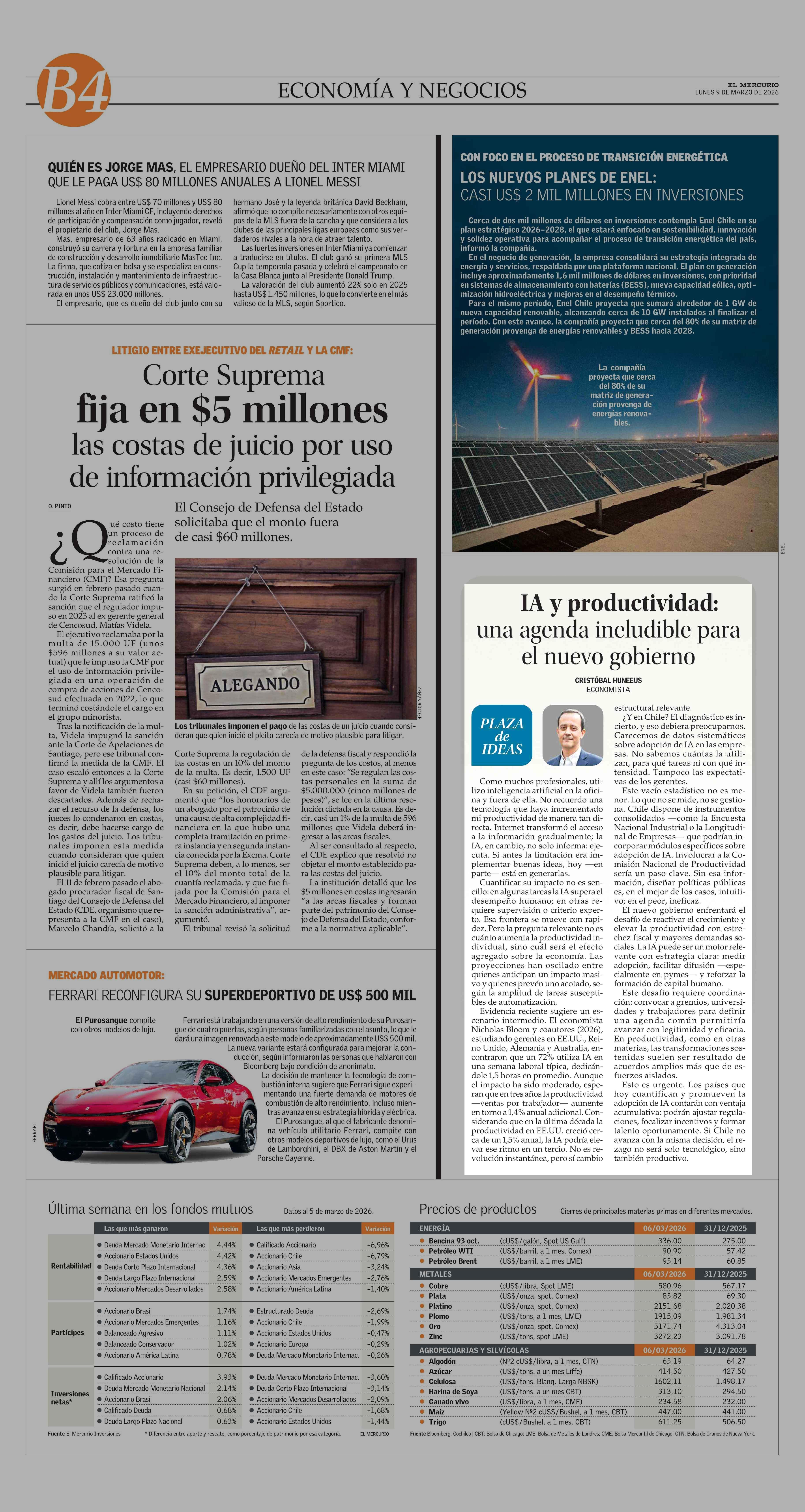 Columnas de Opinión: IA y productividad: una agenda ineludible para el nuevo gobierno 09-03-2026 El Mercurio |
