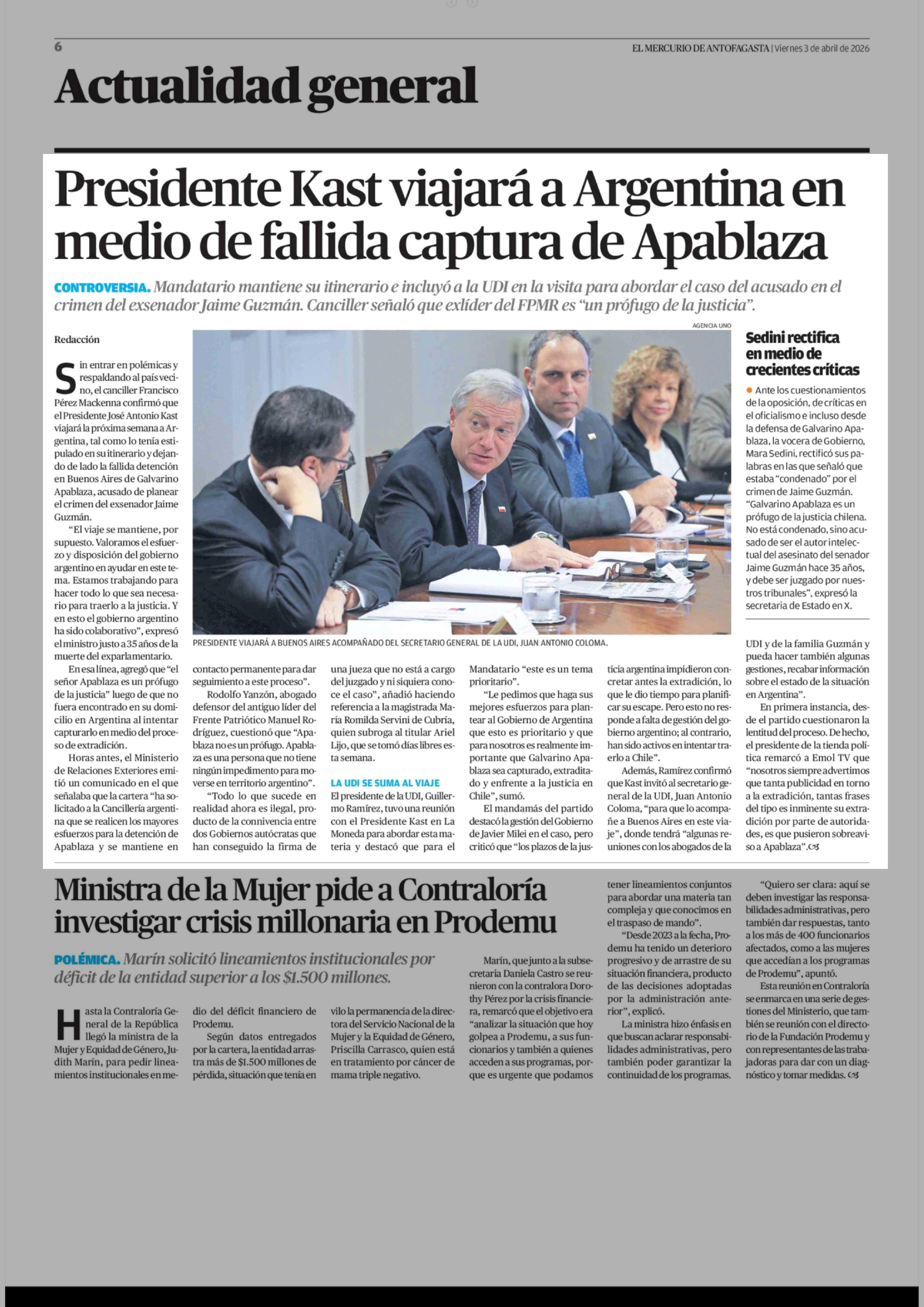 Fuente: El Mercurio de Antofagasta (El Mercurio de Antofagasta) Página(s): 6