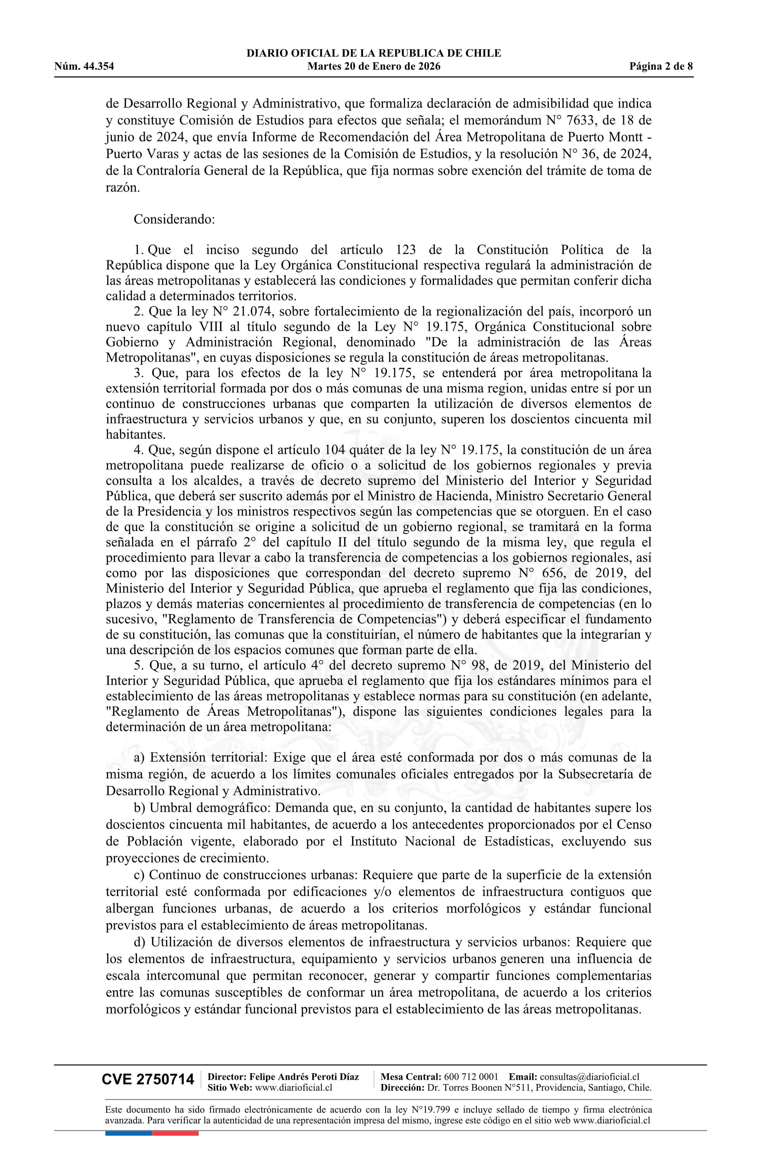 Título: Decreto número 87, de 2025.- Constituye Área Metropolitana Puerto Montt - Puerto Varas