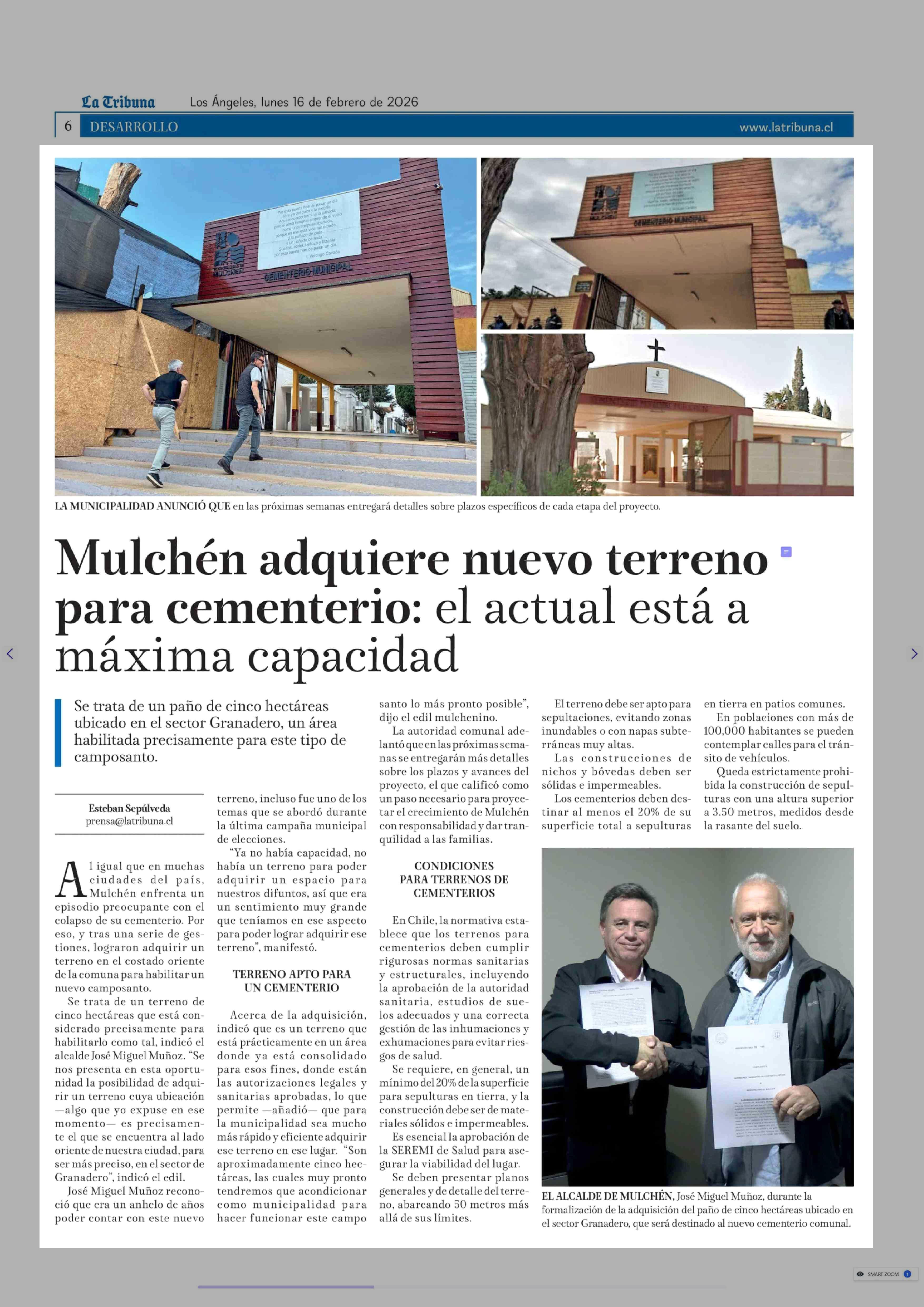 Título: Mulchén adquiere nuevo terreno para cementerio: el actual está a máxima capacidad