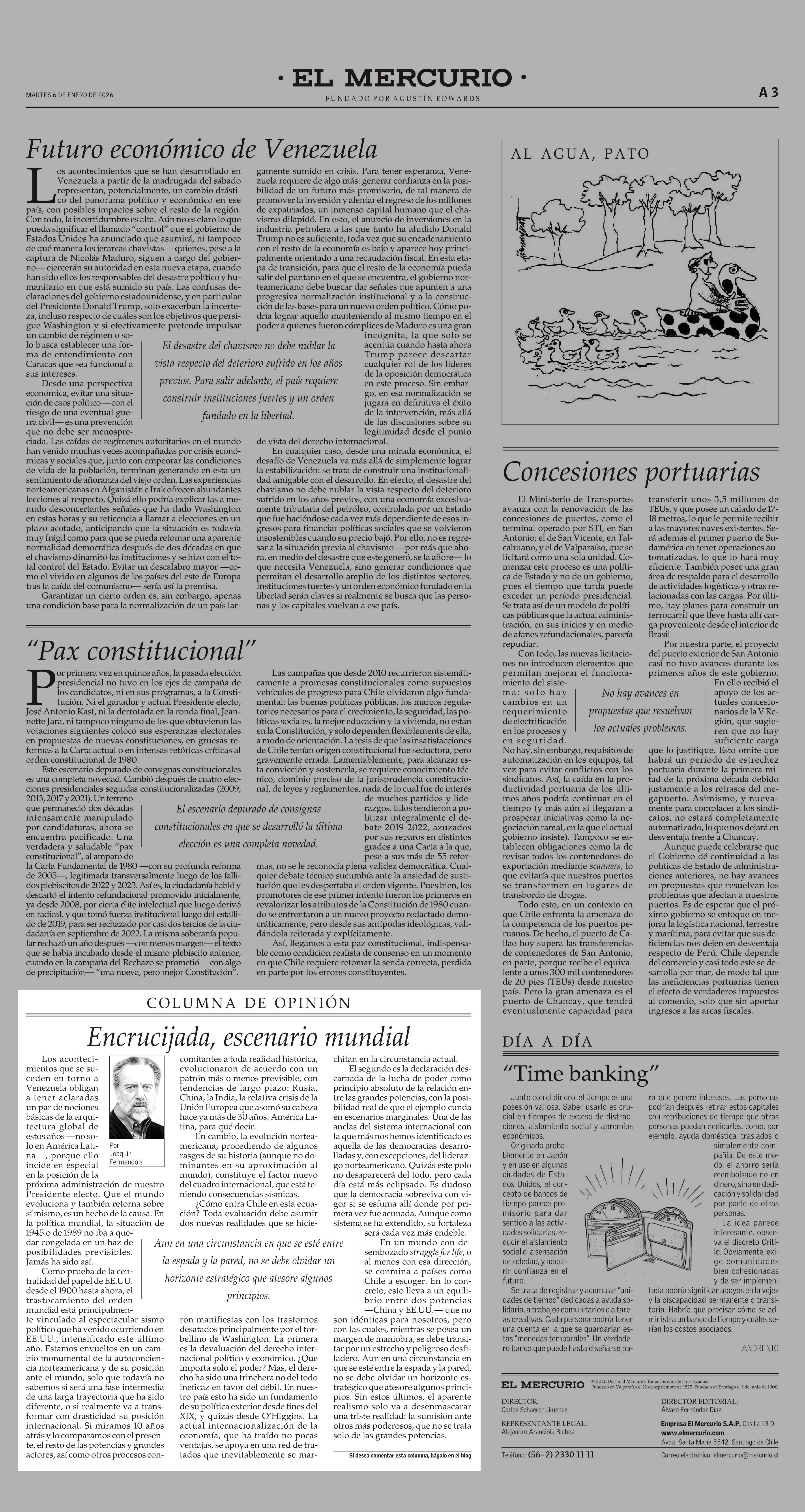 Columnas de Opinión: Encrucijada, escenario mundial 06-01-2026 El Mercurio |