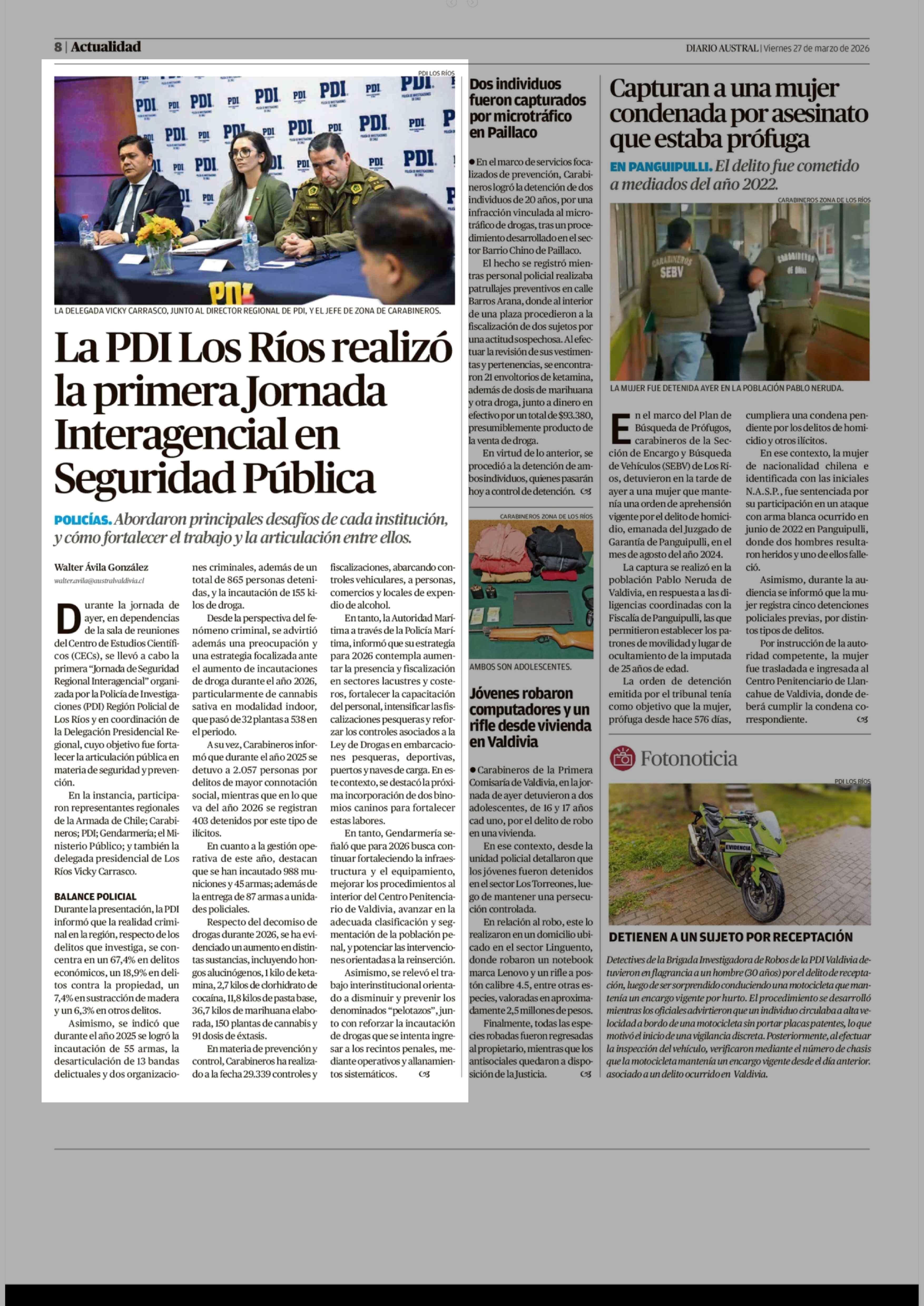 Fecha: 27-03-2026 Sector: Noticia general Región: Región de Los Ríos