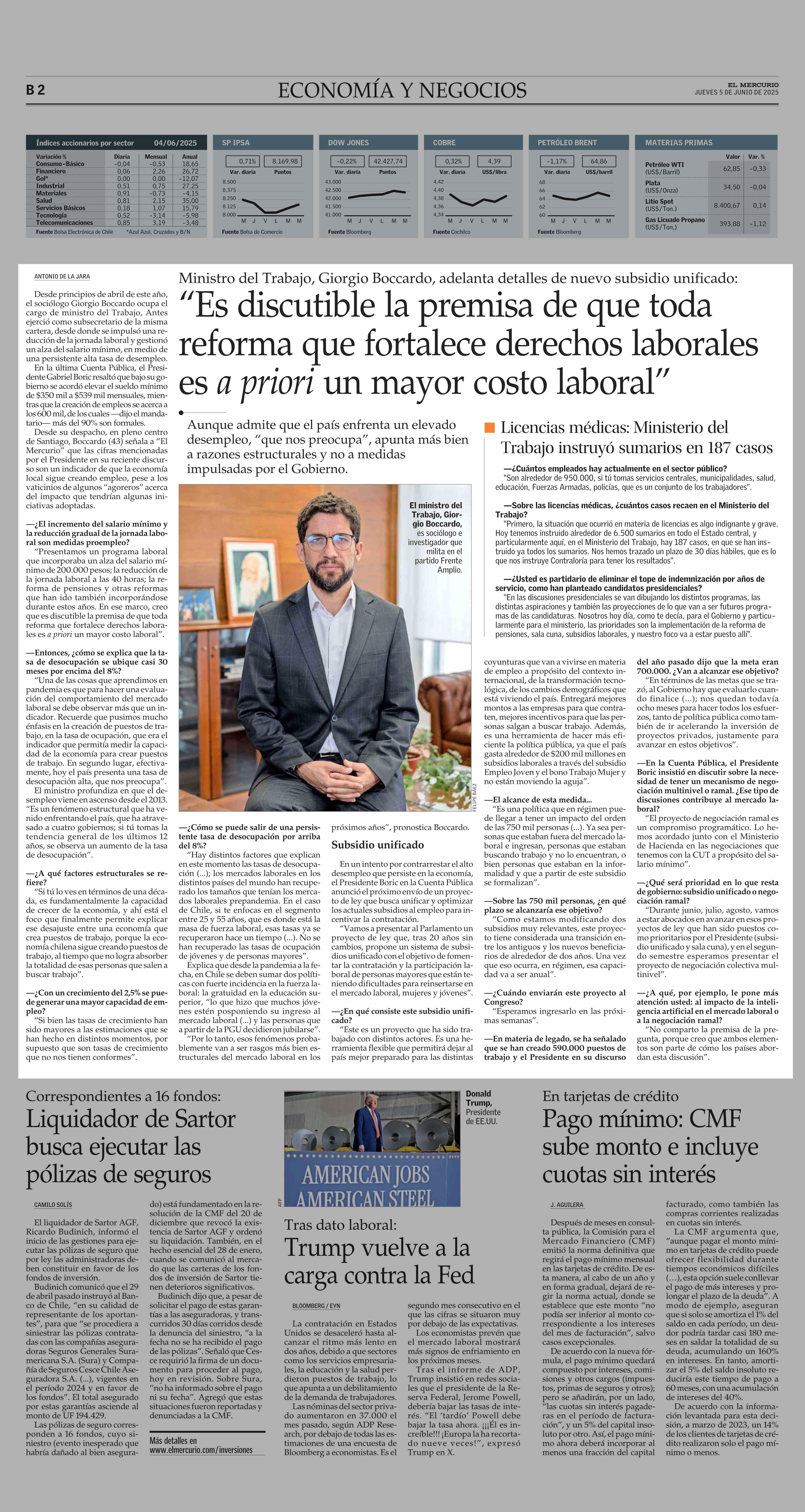 “Es discutible la premisa de que toda reforma que fortalece derechos laborales es a priori un mayor costo laboral” 05-06-2025 El Mercurio |