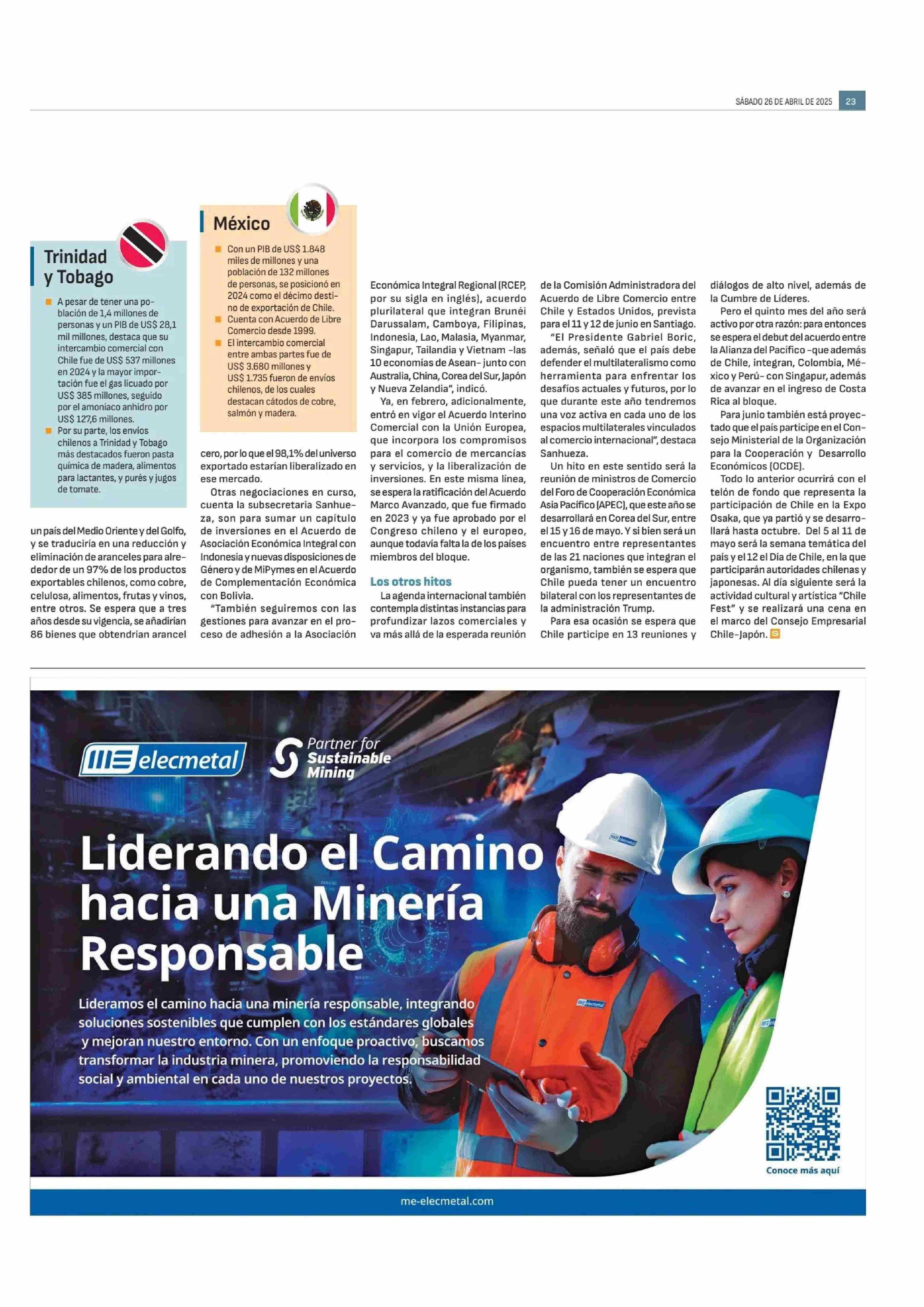 Socios por el mundo, los pasos de Chile para abrir más mercados 26-04-2025 Diario Financiero |