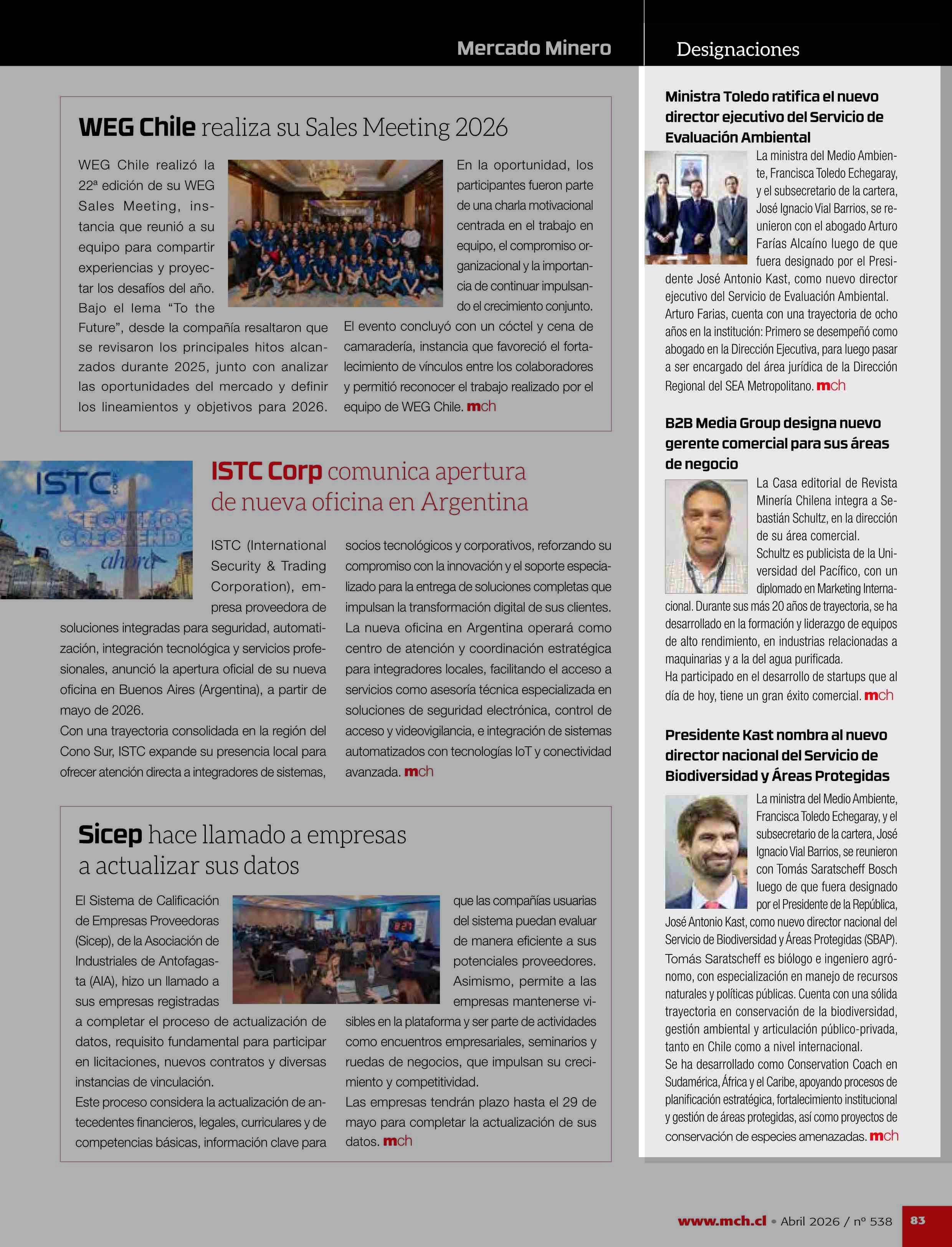 Designaciones 23-04-2026 Revista Minería Chilena |