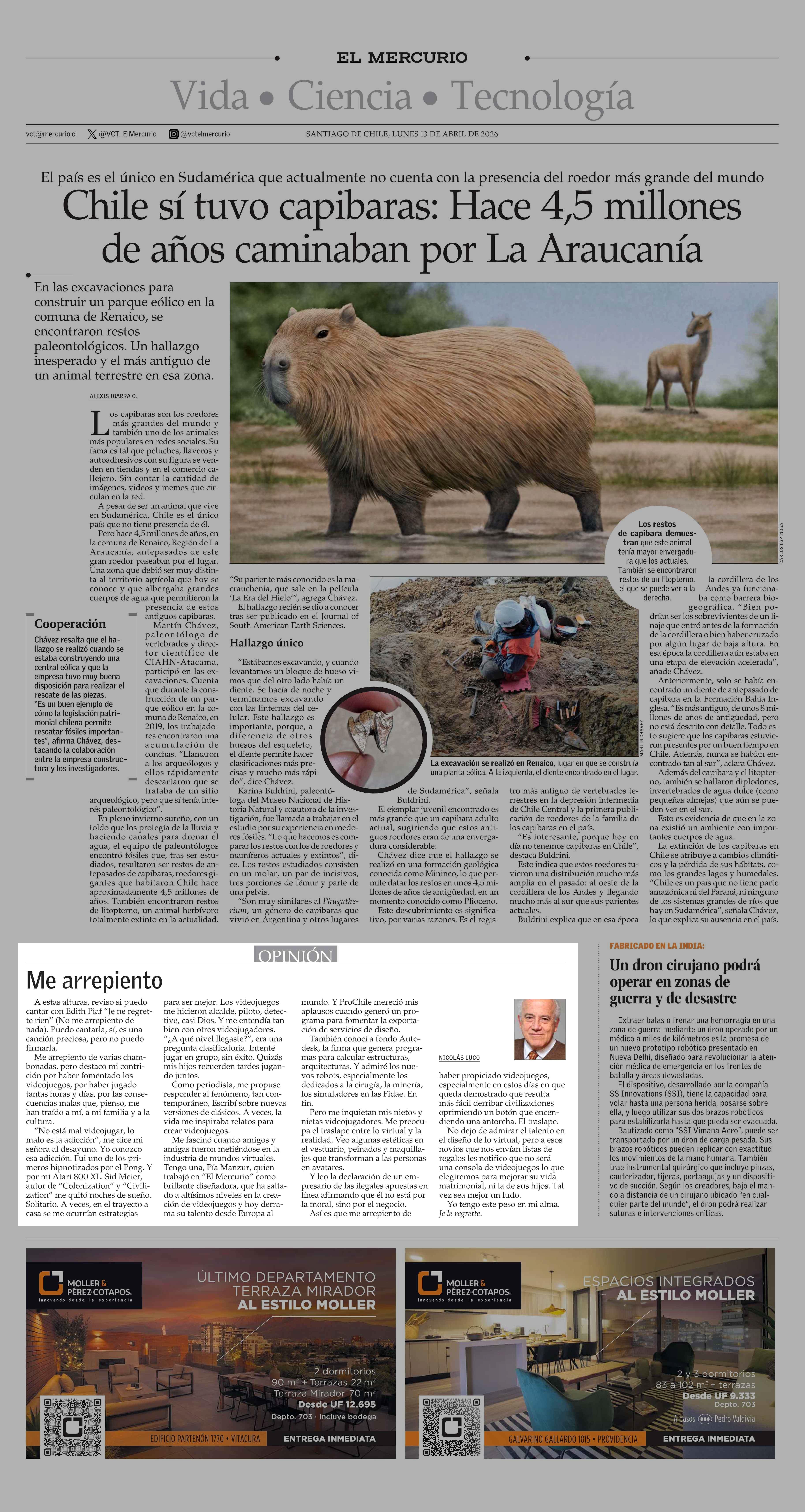 Columnas de Opinión: Me arrepiento 13-04-2026 El Mercurio |