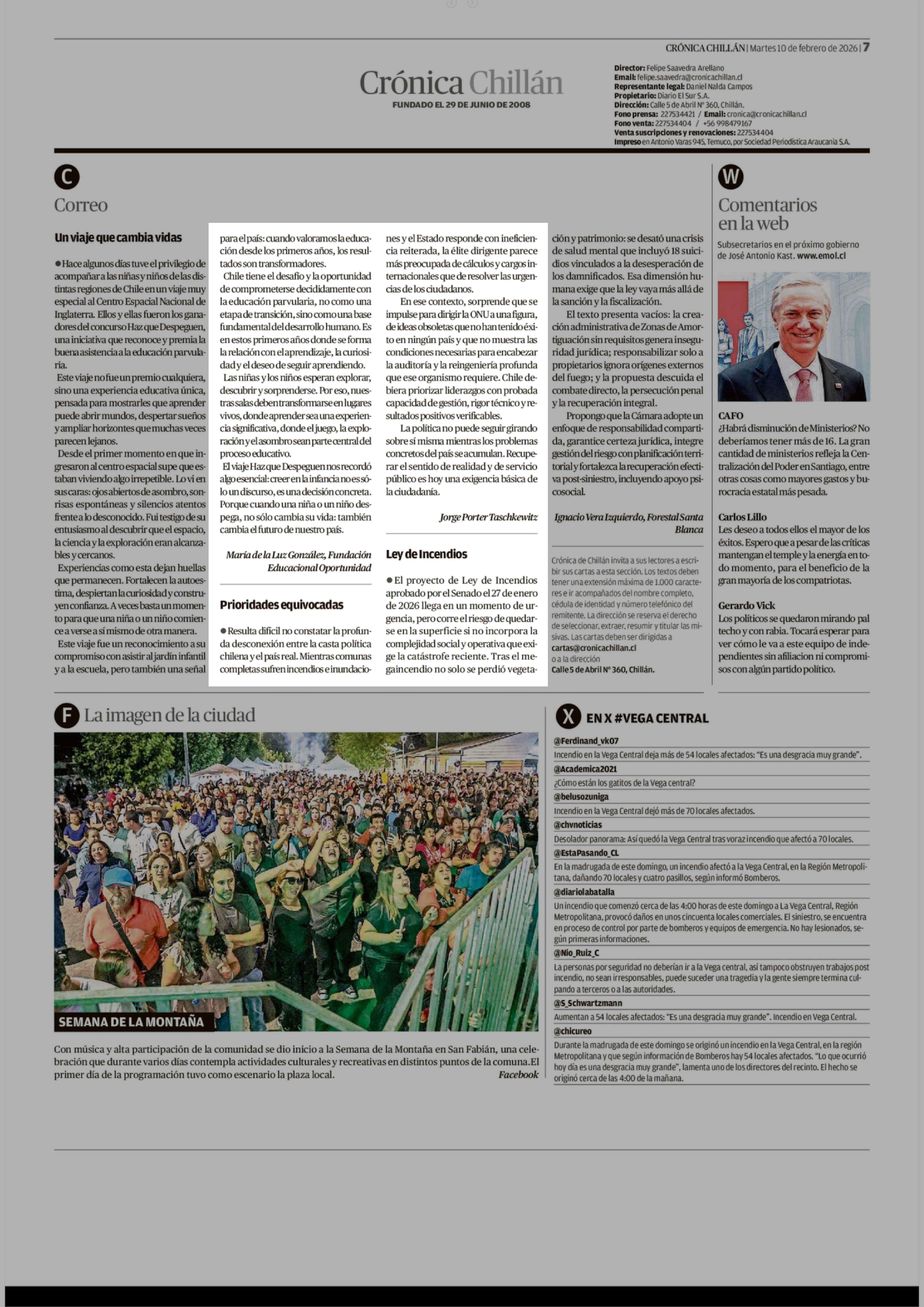 Fecha: 10-02-2026 Sector: Cartas Región: Región del Ñuble