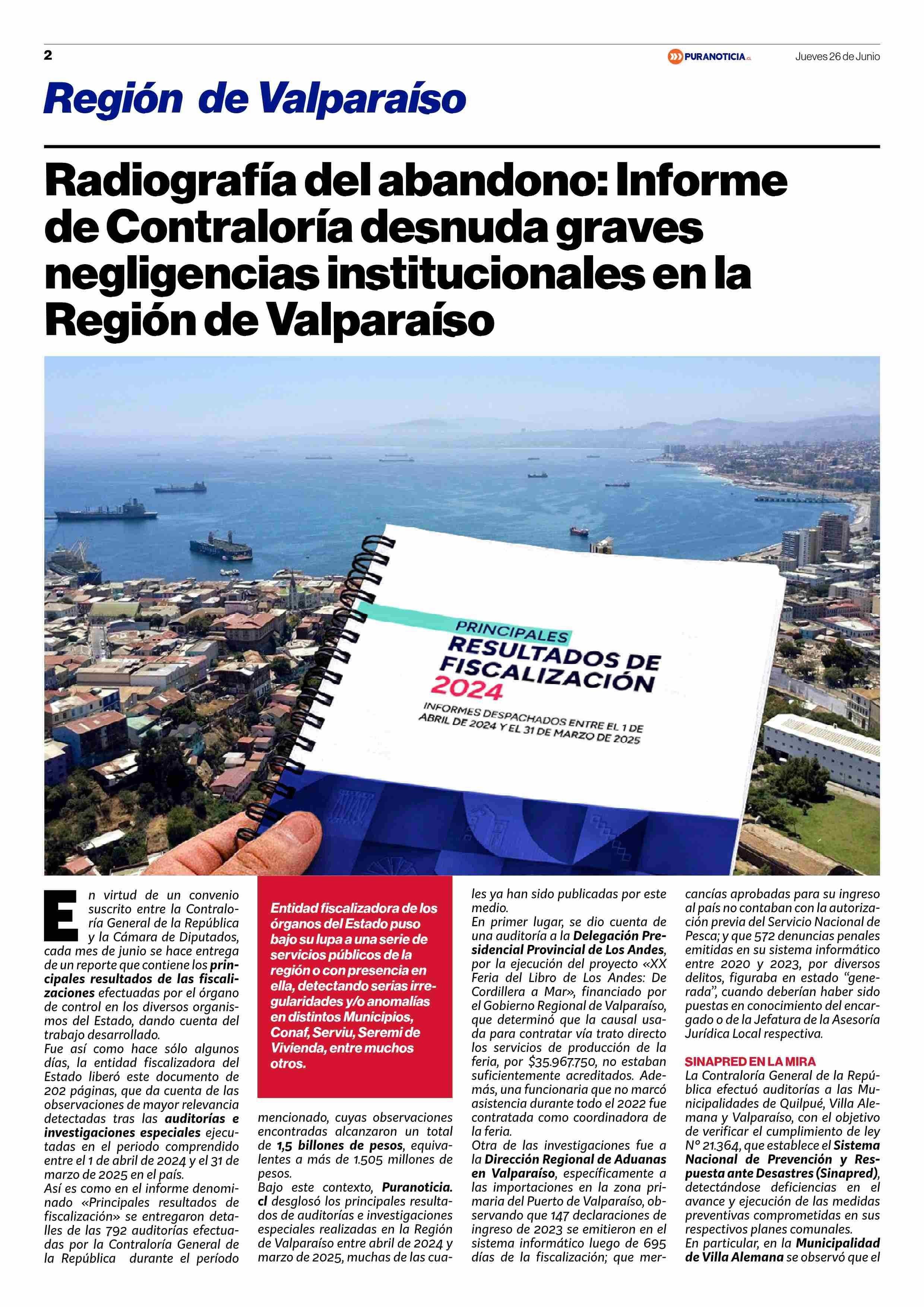 Radiografía del abandono: Informe de Contraloría desnuda graves negligencias institucionales en la Región de Valparaíso 26-06-2025 Puranoticia.cl |