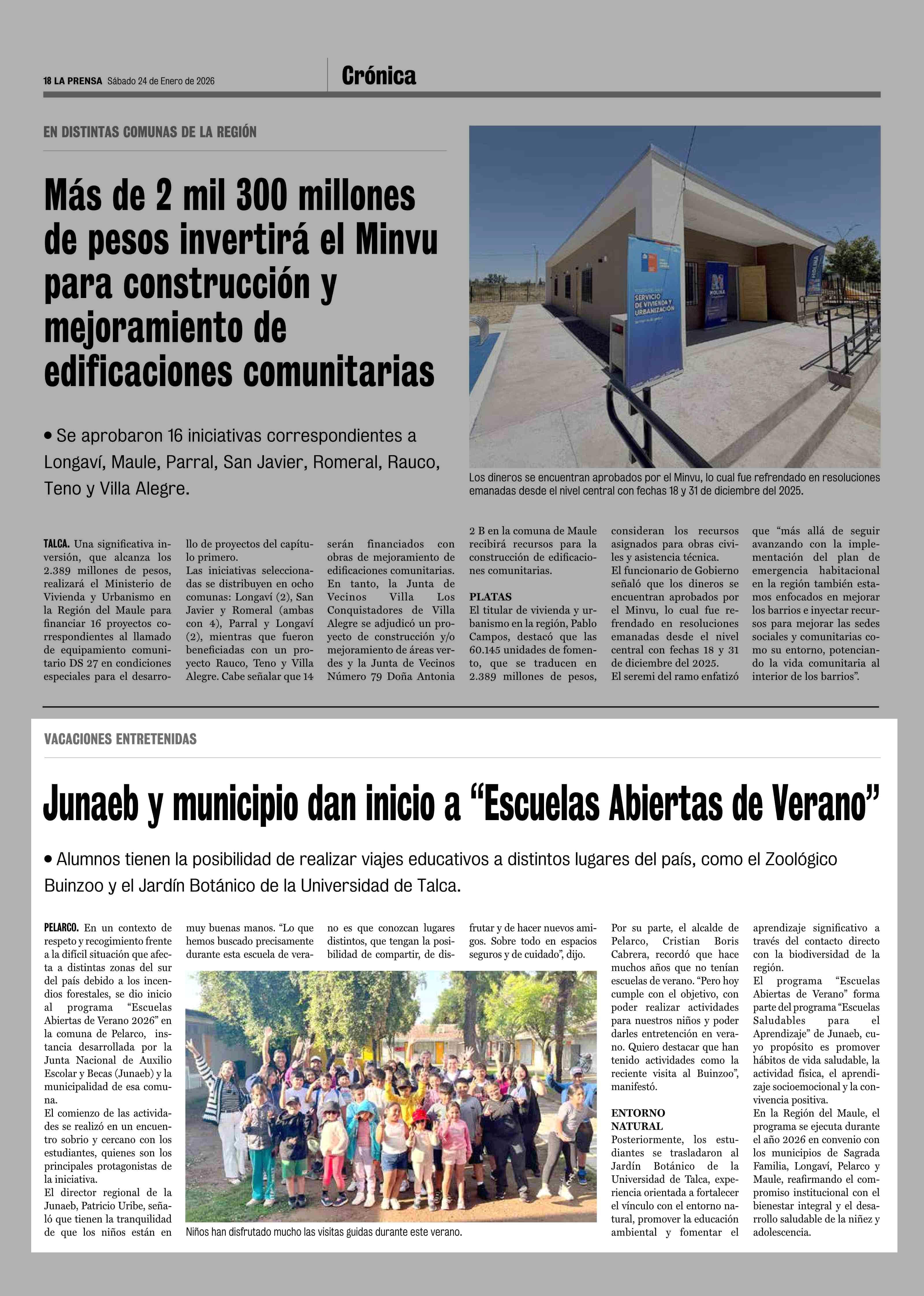 | Fecha: | 24-01-2026 | Sector: | Noticia general | Región: | Región del Maule |