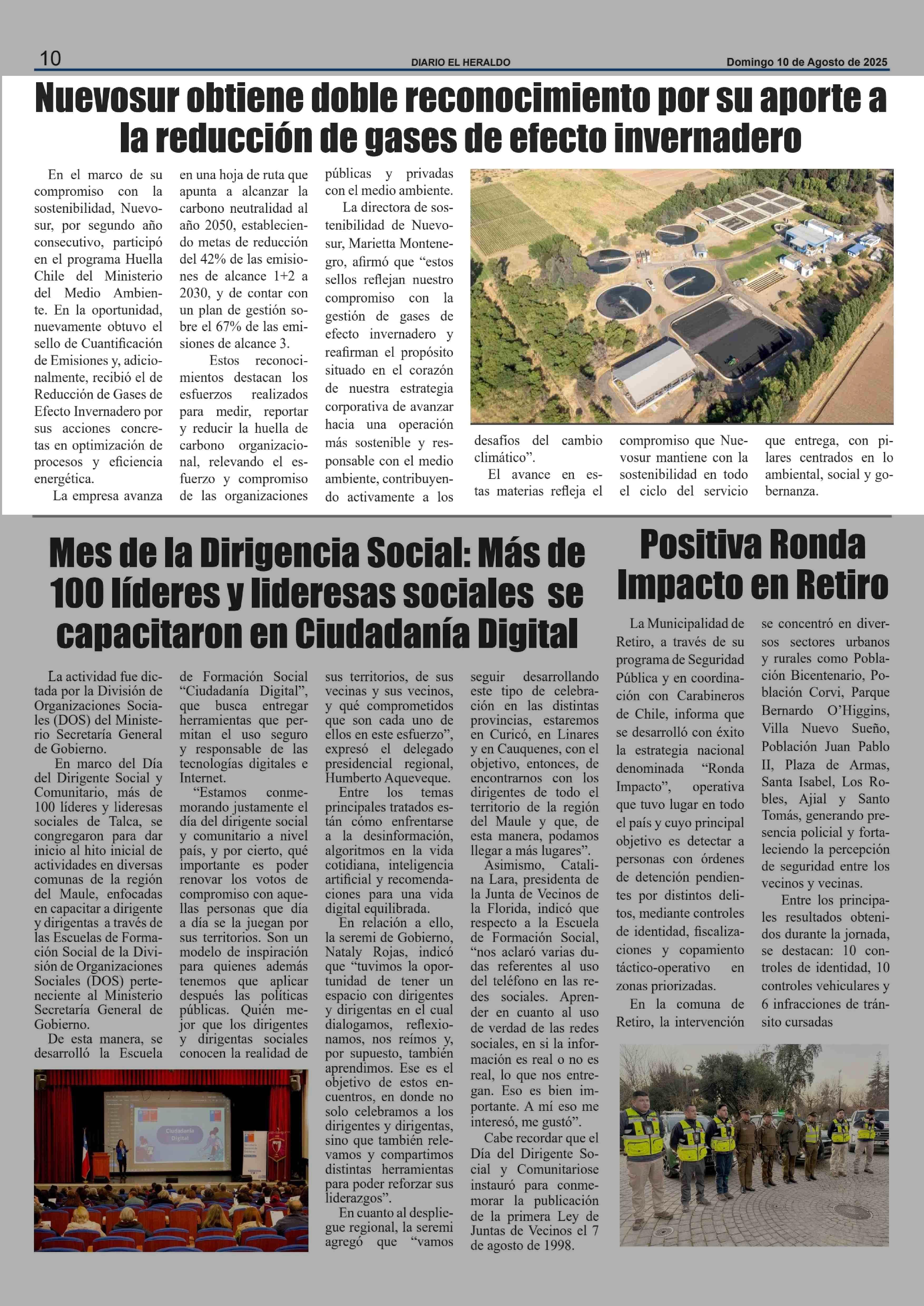 Nuevosur obtiene doble reconocimiento por su aporte a la reducción de gases de efecto invernadero 10-08-2025 El Heraldo |