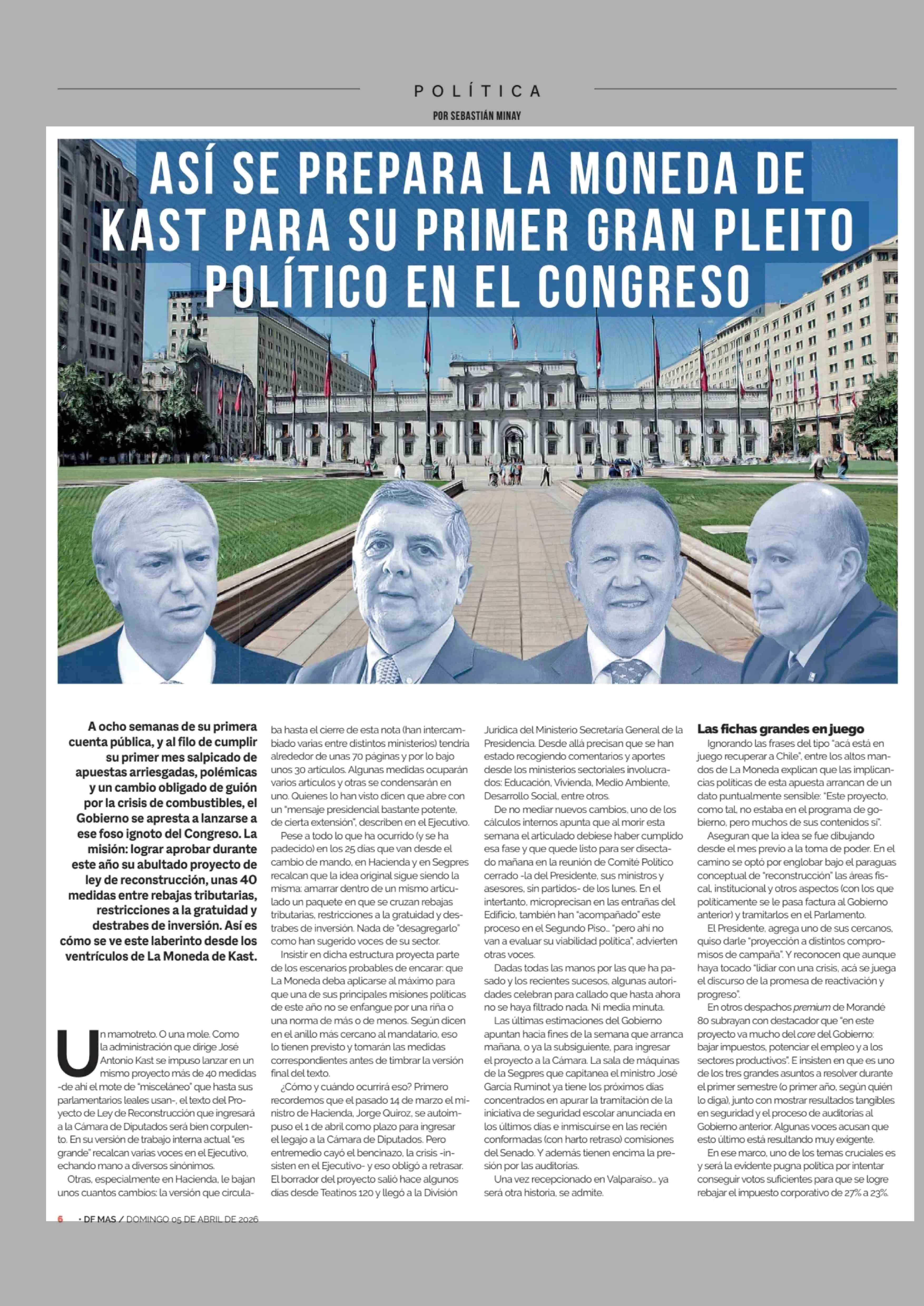 Título: ASÍ SE PREPARA LA MONEDA DE KAST PARA SU PRIMER GRAN PLEITO POLÍTICO EN EL CONGRESO