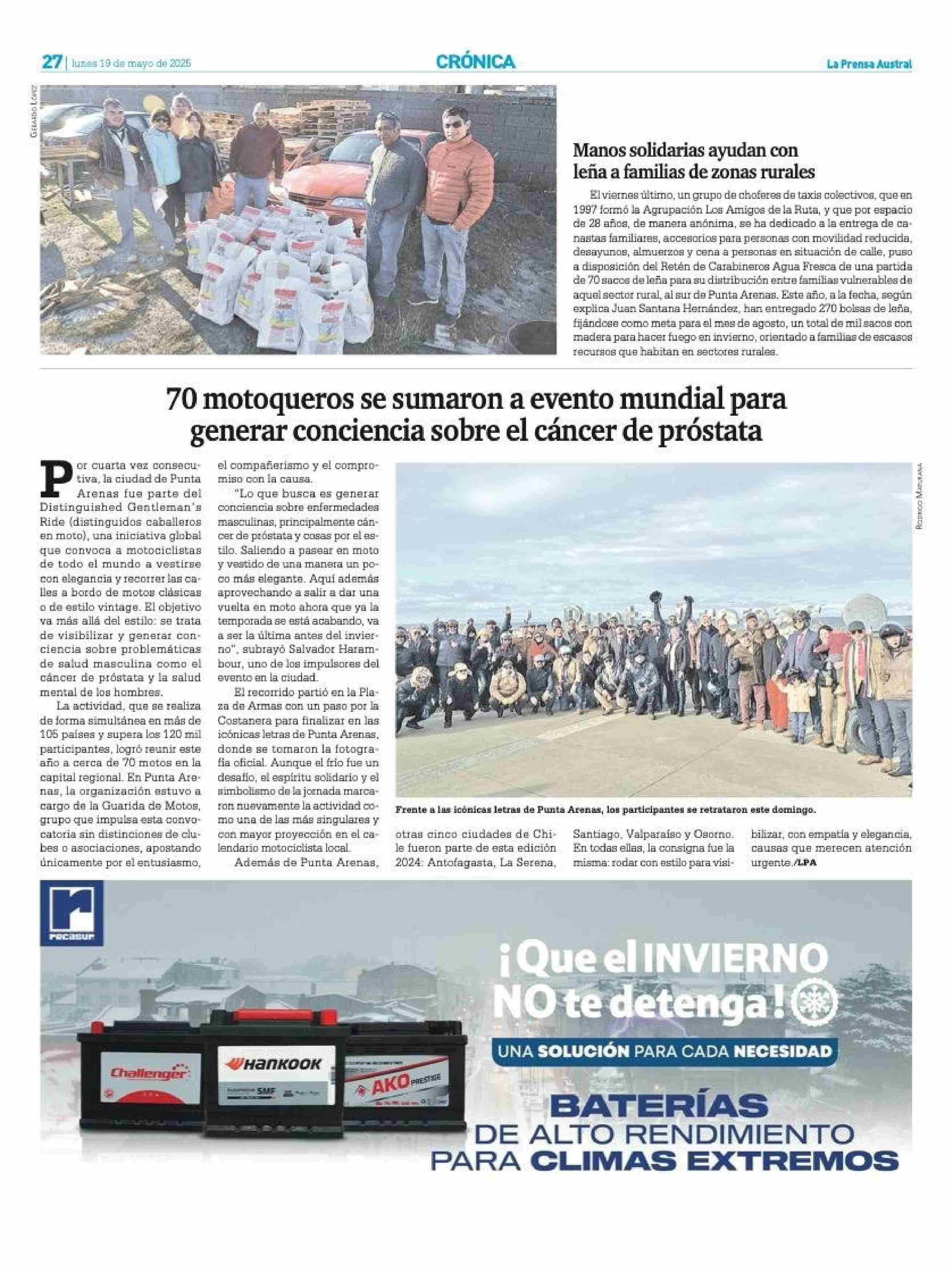 Manos solidarias ayudan con leña a familias de zonas rurales 19-05-2025 La Prensa Austral |