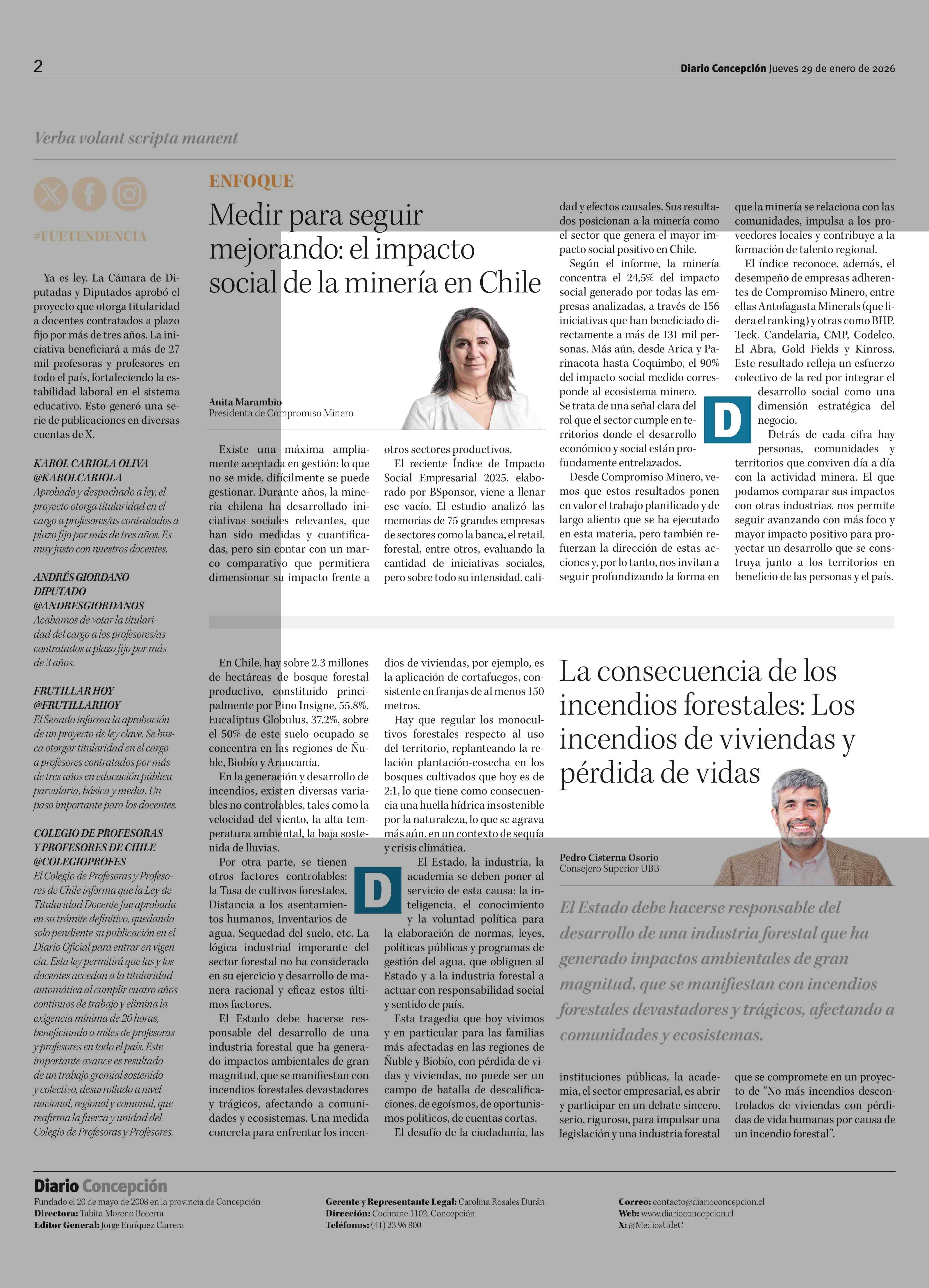 Fecha: 29-01-2026 Sector: Columnas de Opinión Región: Región del Bío-Bío