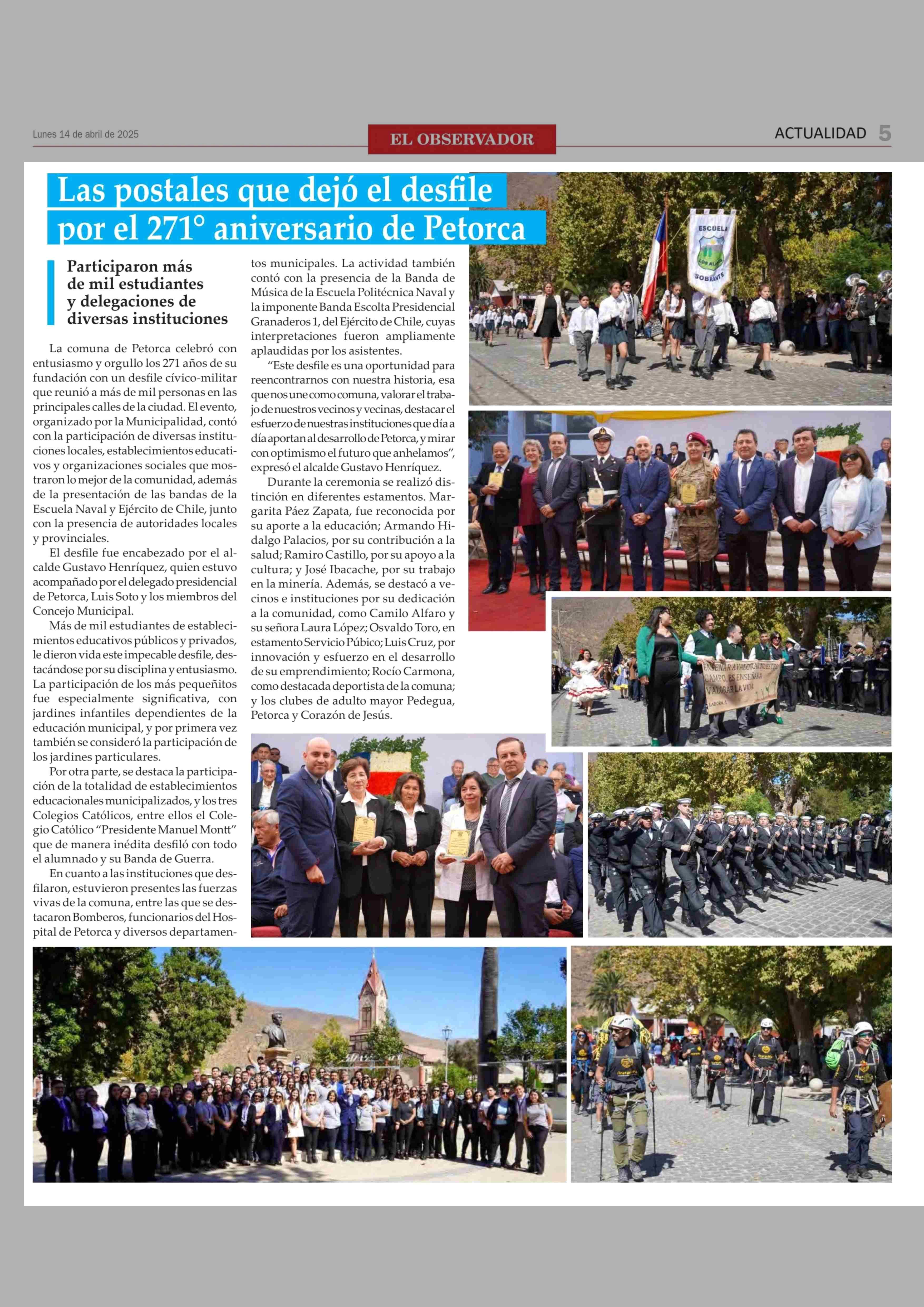 Las postales que dejó el desfile por el 271° aniversario de Petorca 14-04-2025 El Observador Vespertino |
