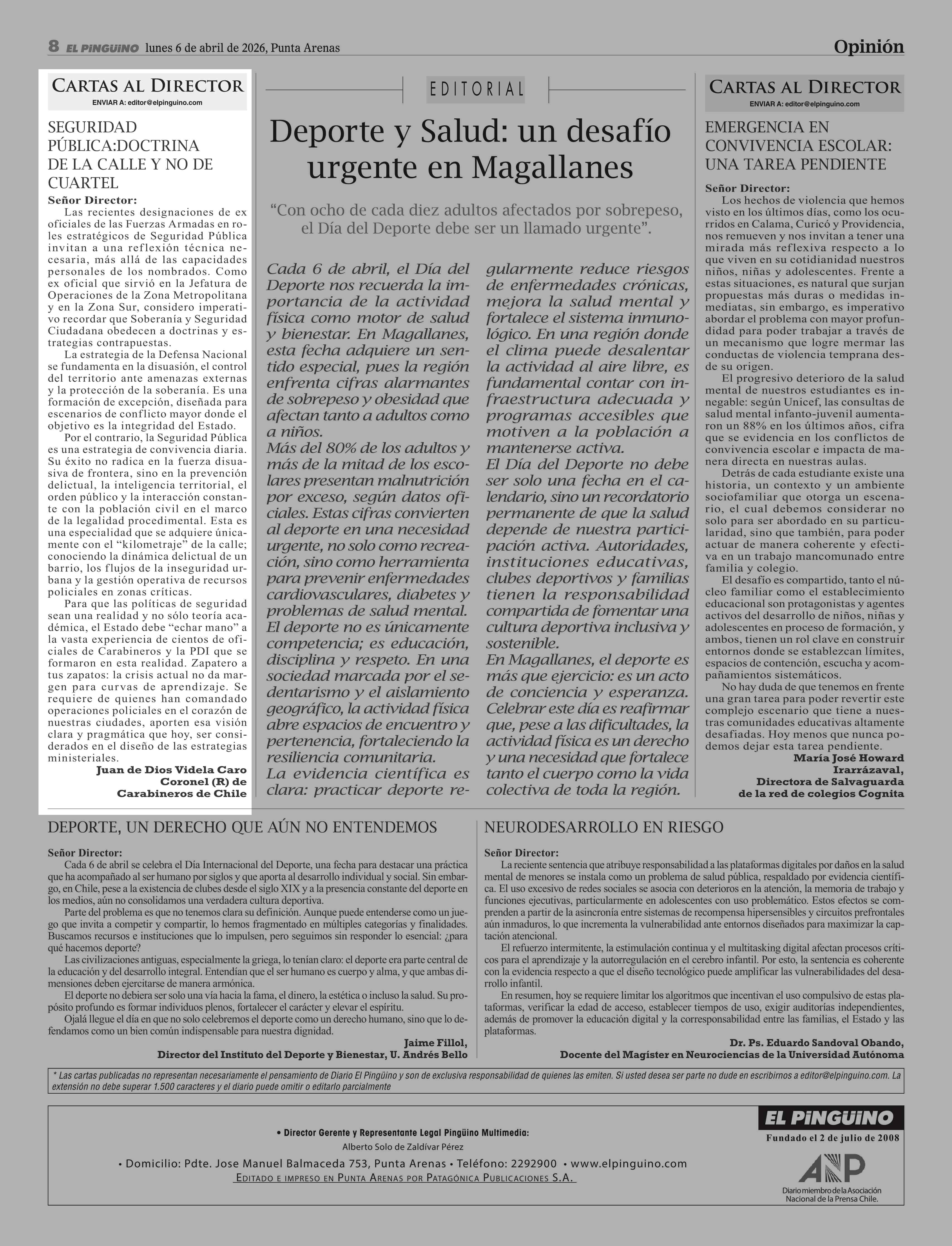 Título: Cartas: SEguridad pública:doctrina dE la callE y no dE cuartEl