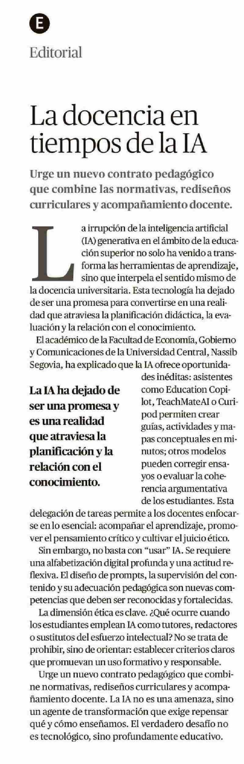 EDITORIAL: La docencia en tiempos de la IA 26-05-2025 Diario Austral Región de Los Ríos |