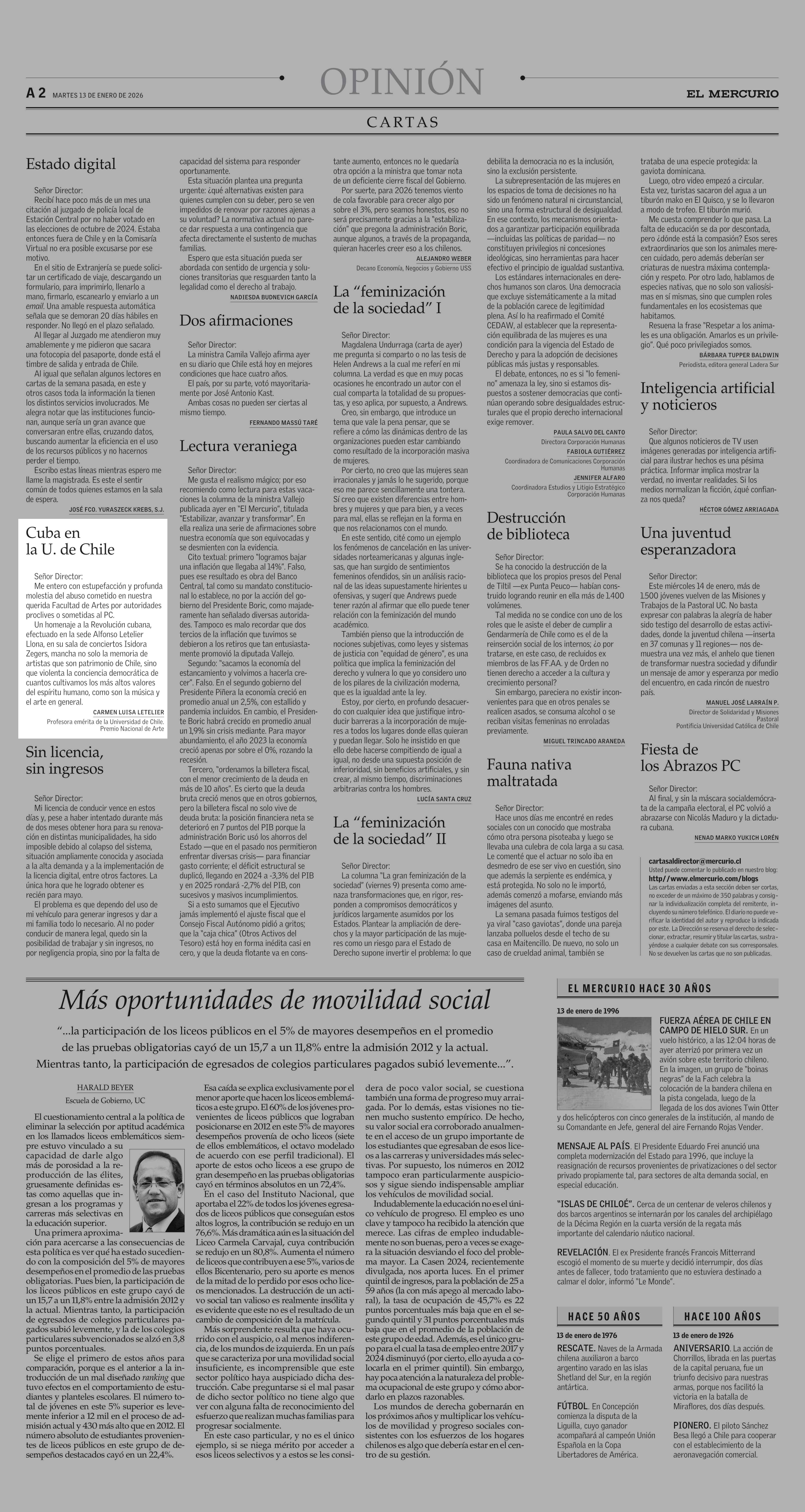 Cartas: Cuba en la U. de Chile 13-01-2026 El Mercurio |